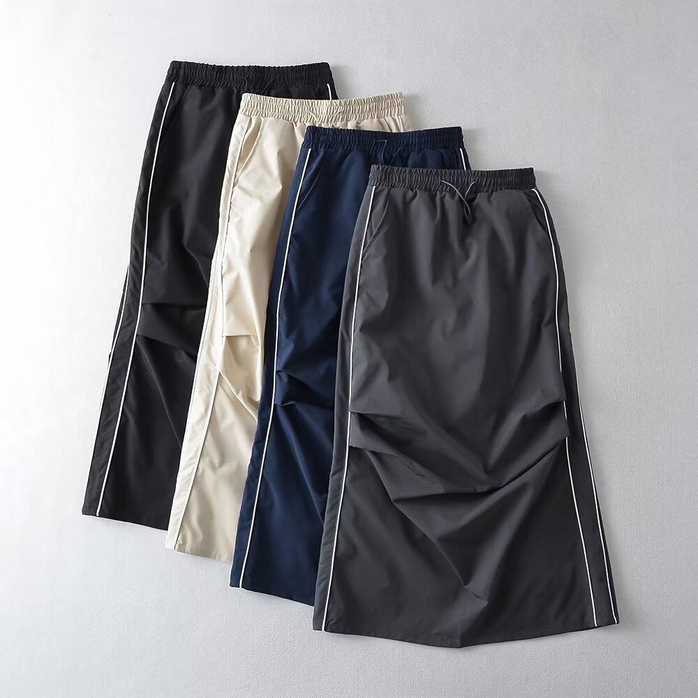 Длинная юбка, европейский стиль, в американском стиле, высокая талия, на шнурках, средней длины