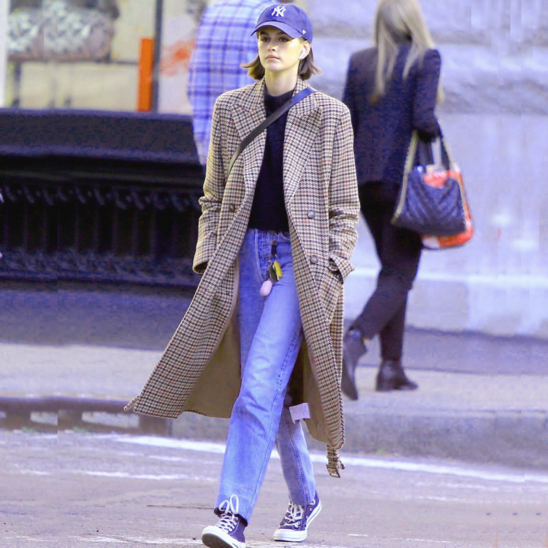 Exjr Покупка Kaia Gerber European и American Trench Comse Jackets Winter Wool, длинная птичья сетка