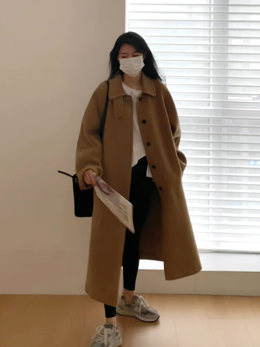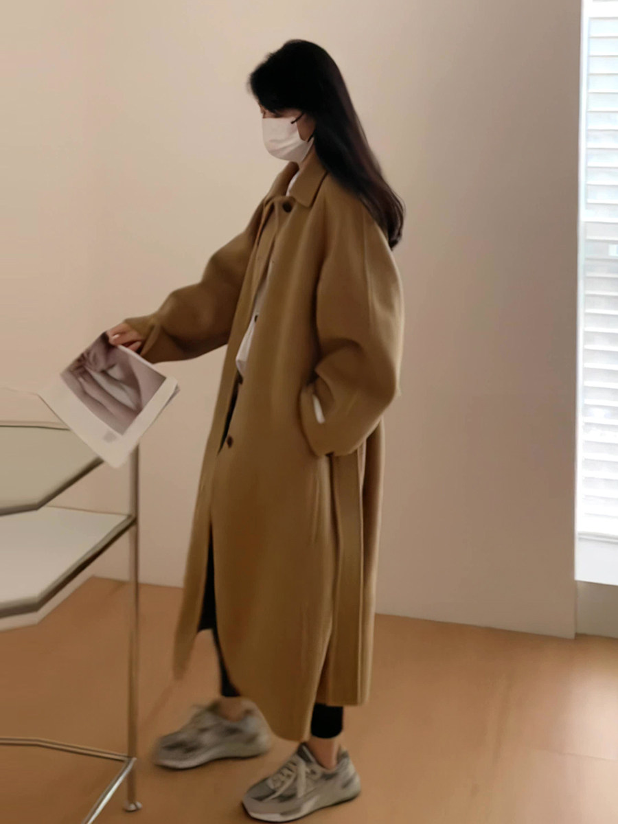 Длинное цветное двусторонное демисезонное шерстяное пальто, 2024 года, свободный крой, средней длины