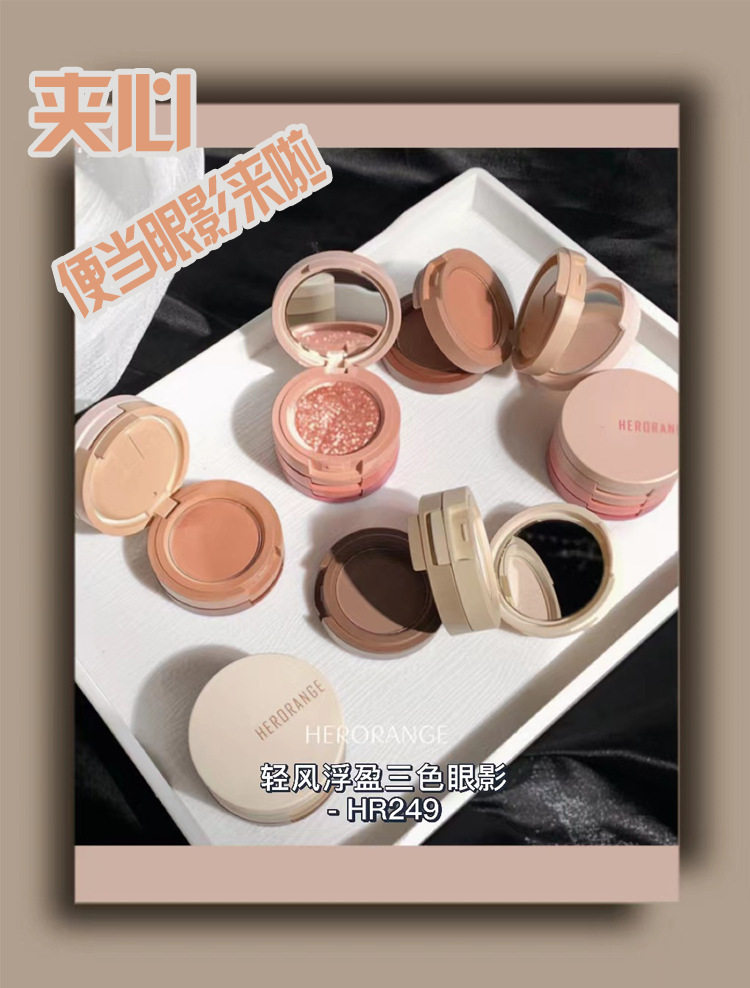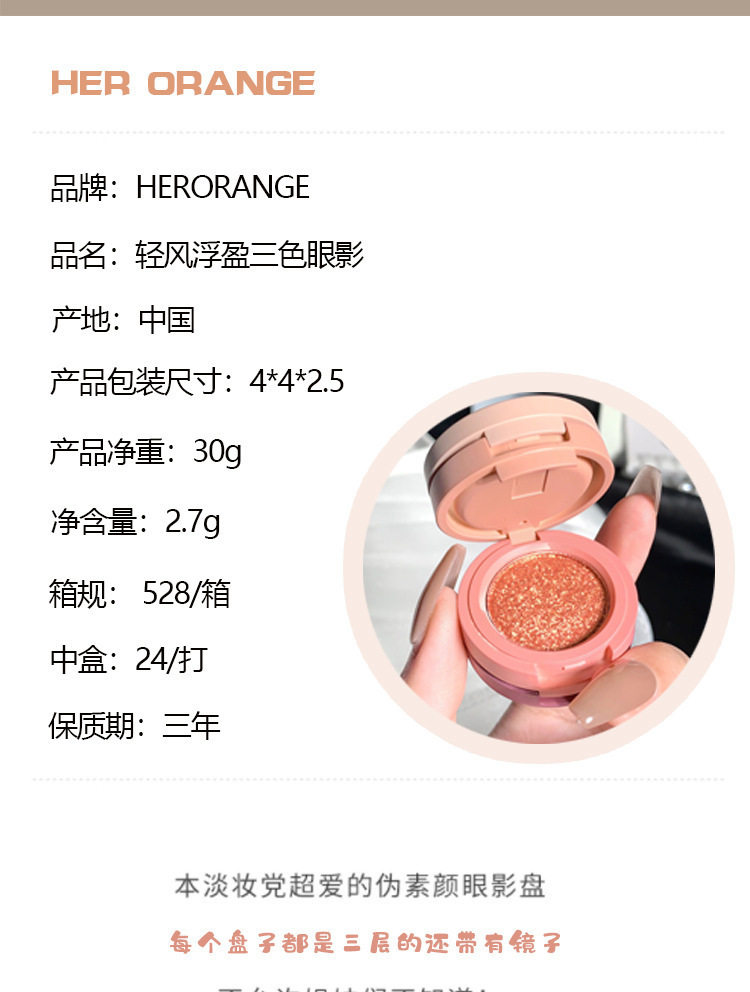 HERORANGE Светлый ветер Плавающийся трехволорная палитра тени для век Три слоя бутербродов Bento Box Learl Light Matte и большие блестки