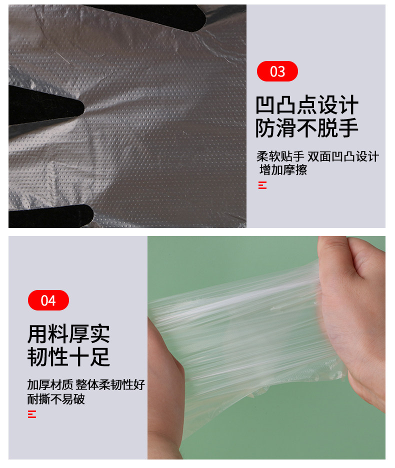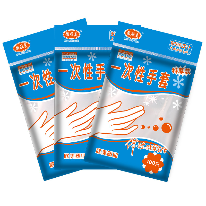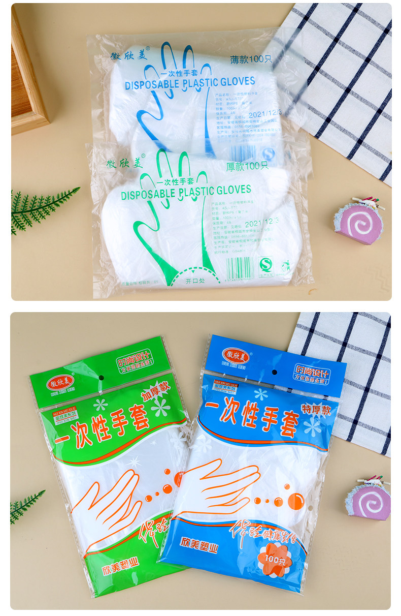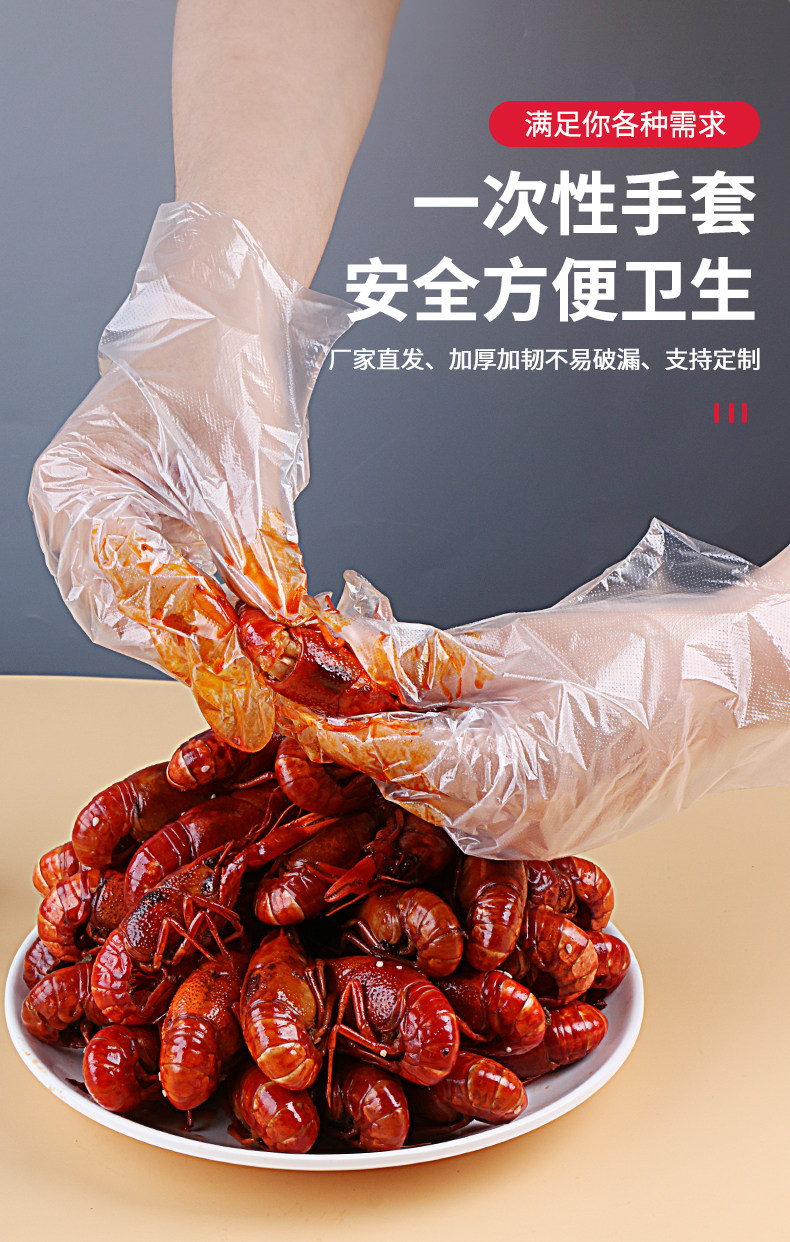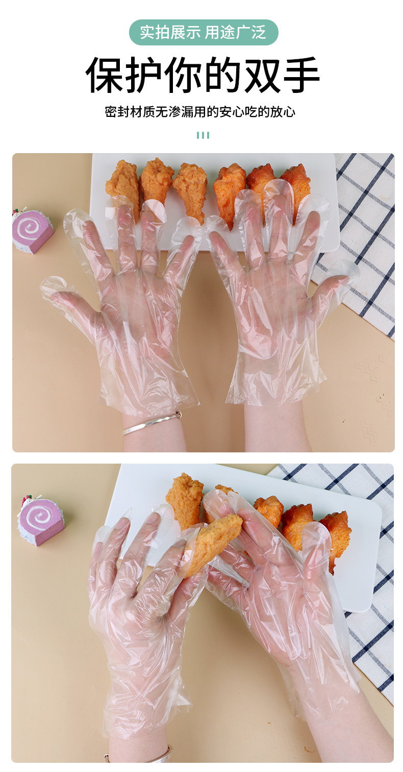 Одноразовая пластиковая перчатка с толстой пищей -разглашайте тонкую пленку прозрачную для парикмахерской для парикмахера для защиты домохозяйства.