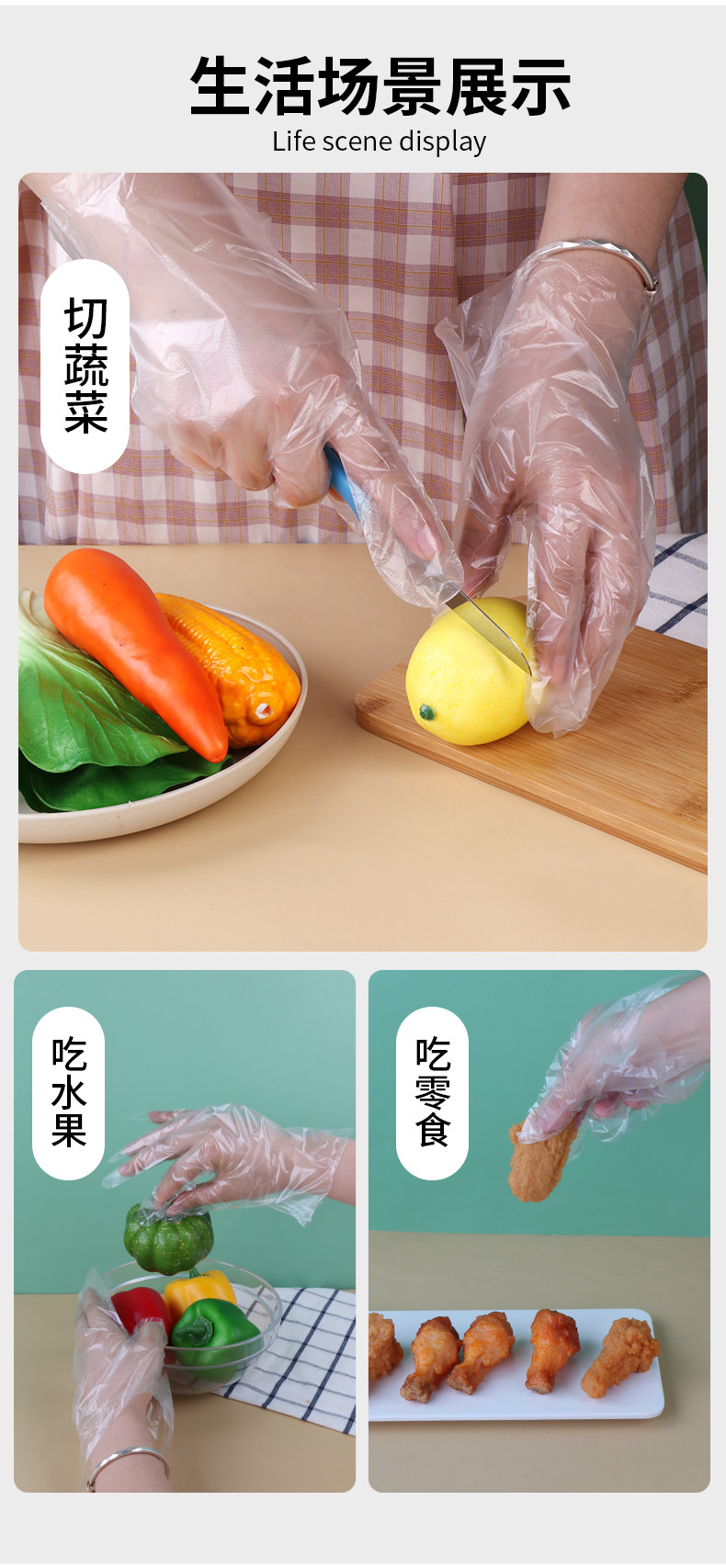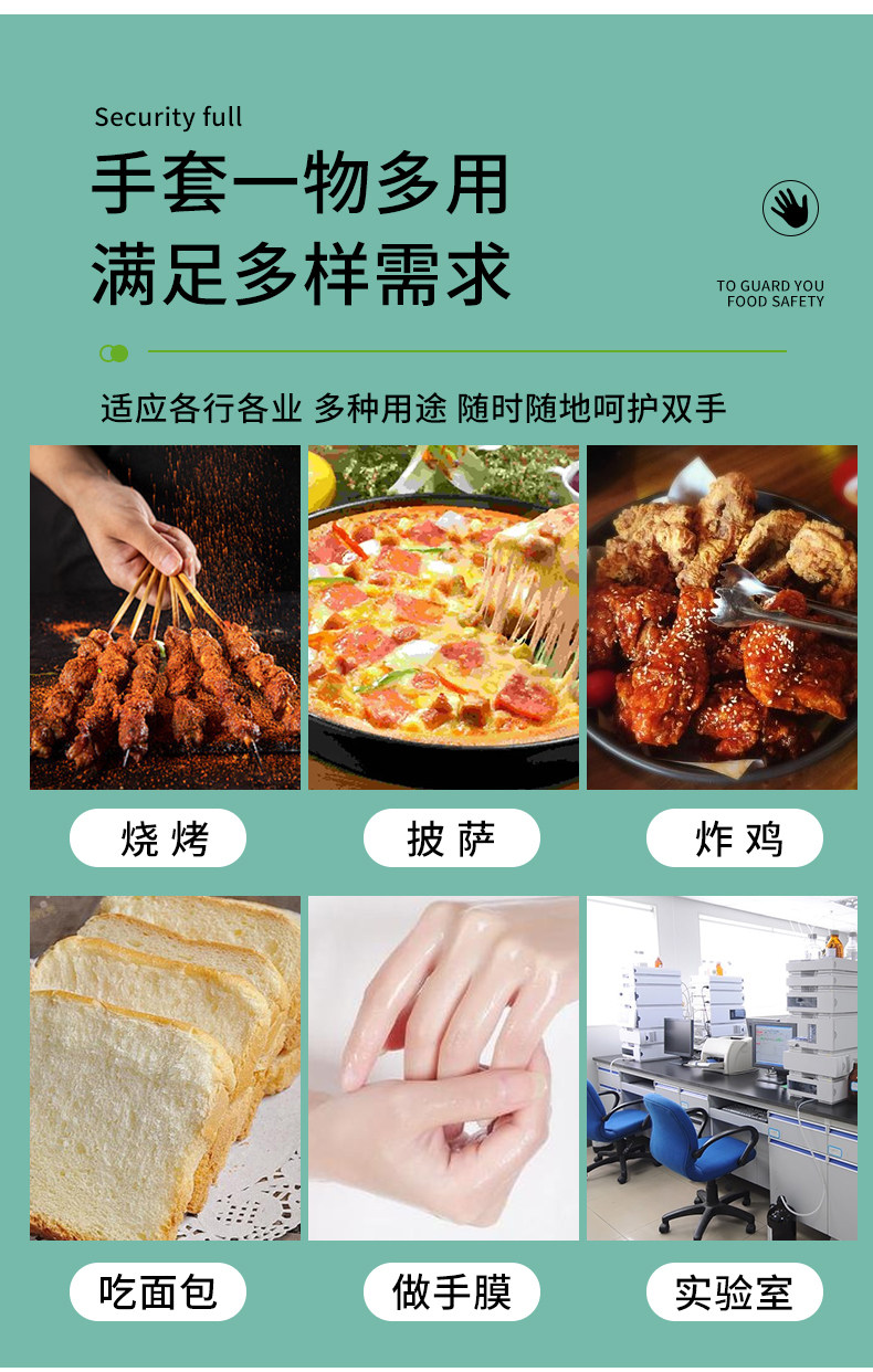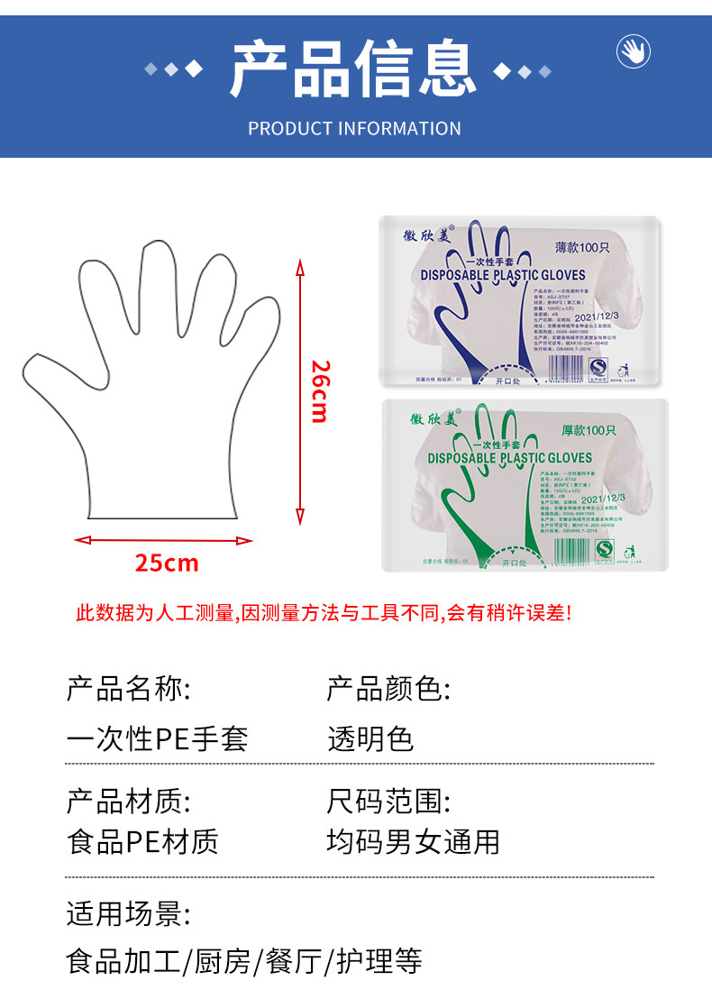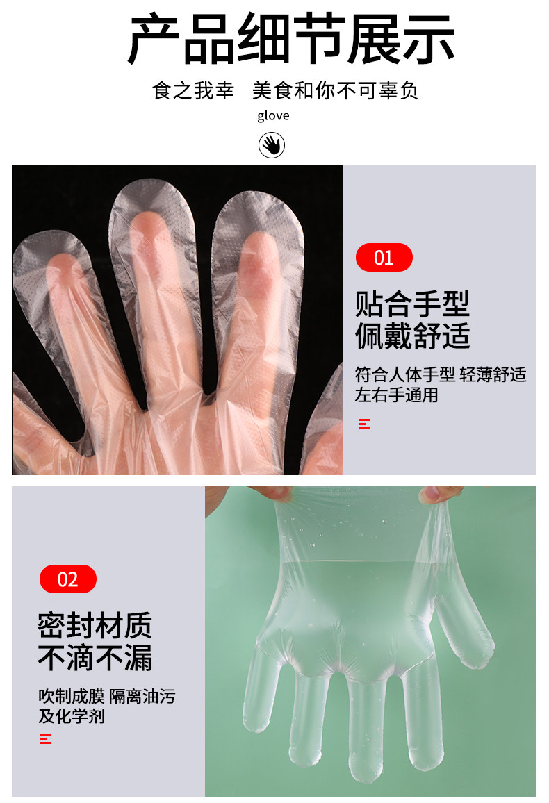 Одноразовая пластиковая перчатка с толстой пищей -разглашайте тонкую пленку прозрачную для парикмахерской для парикмахера для защиты домохозяйства.