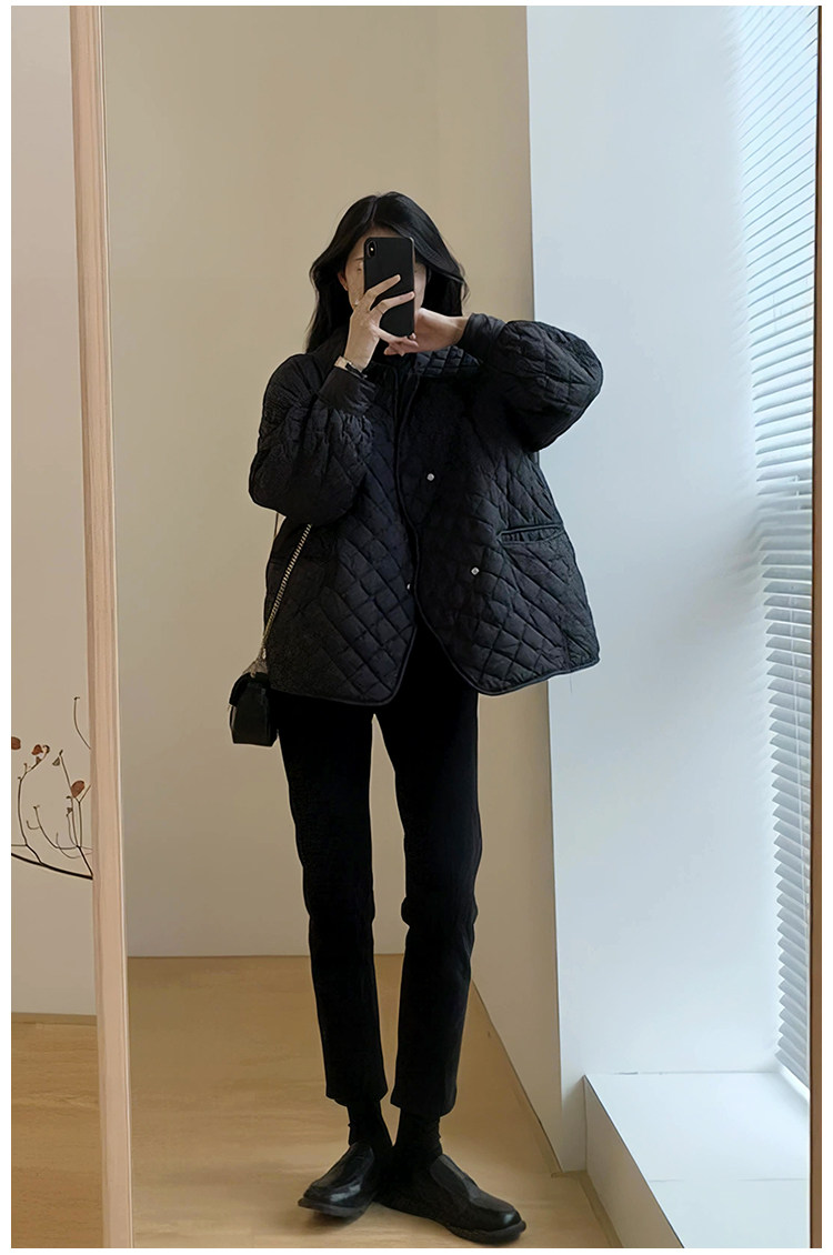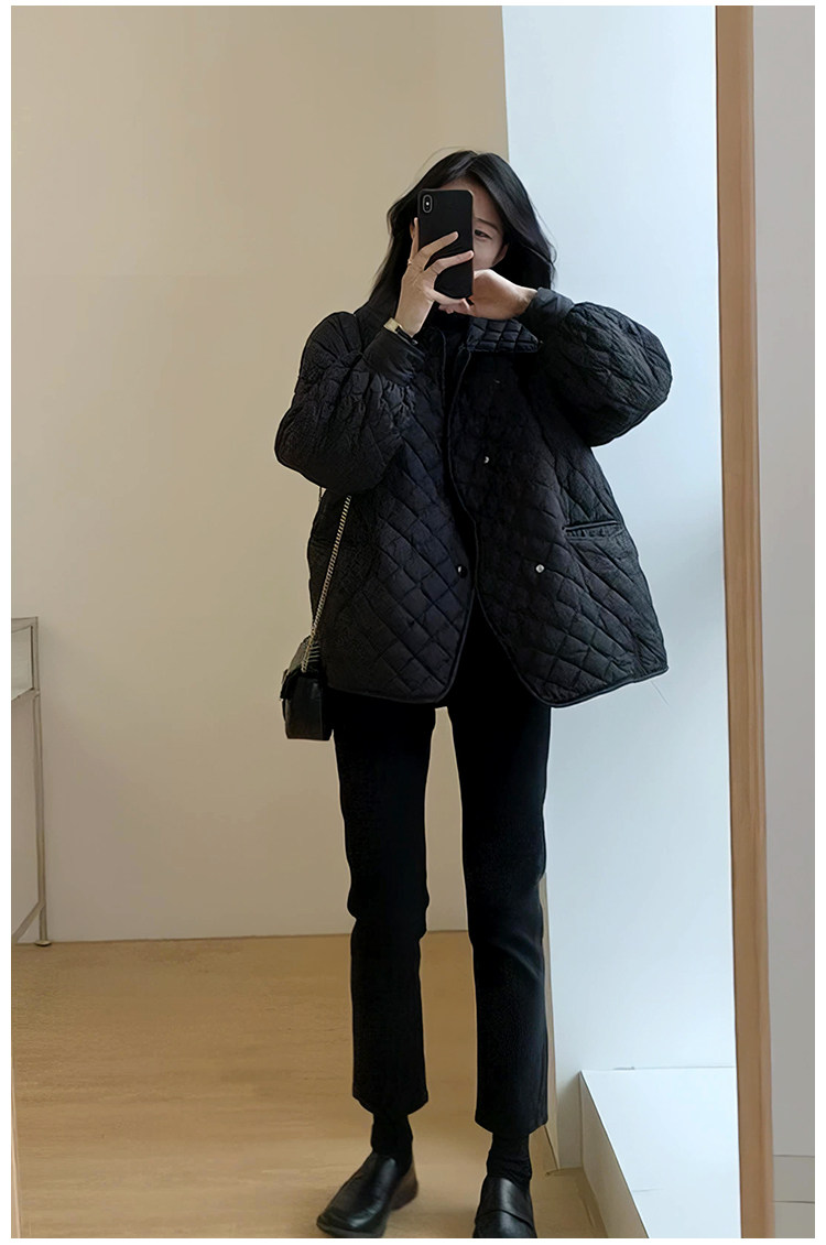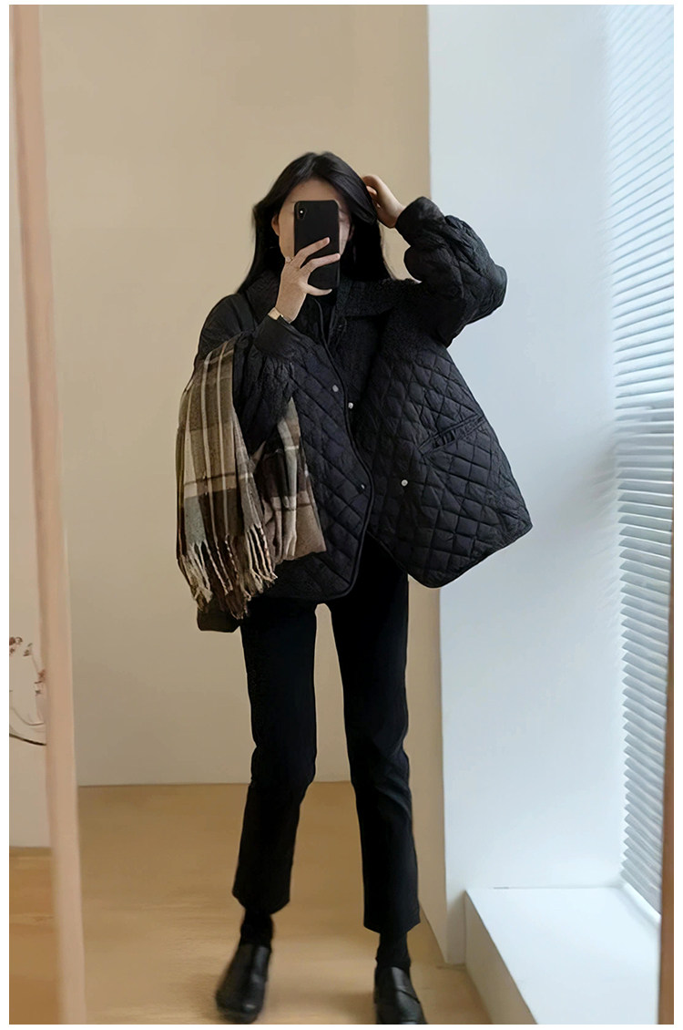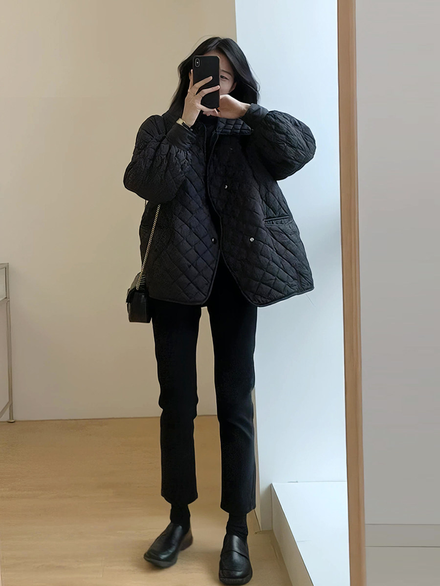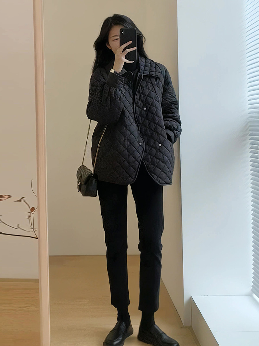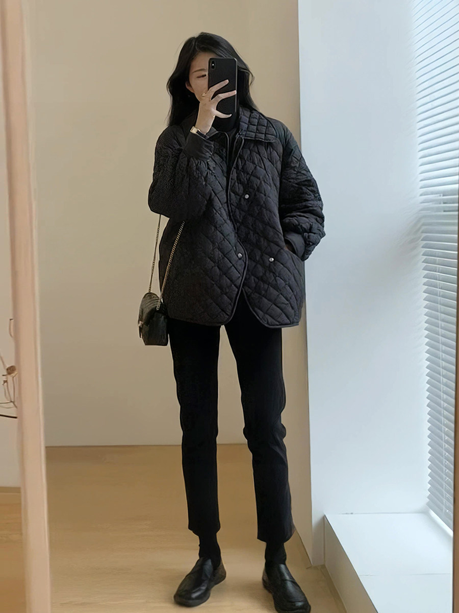 Весенний осенний черный ретро брендовый пуховик с ромбовидным узором, удерживающая тепло куртка с пухом