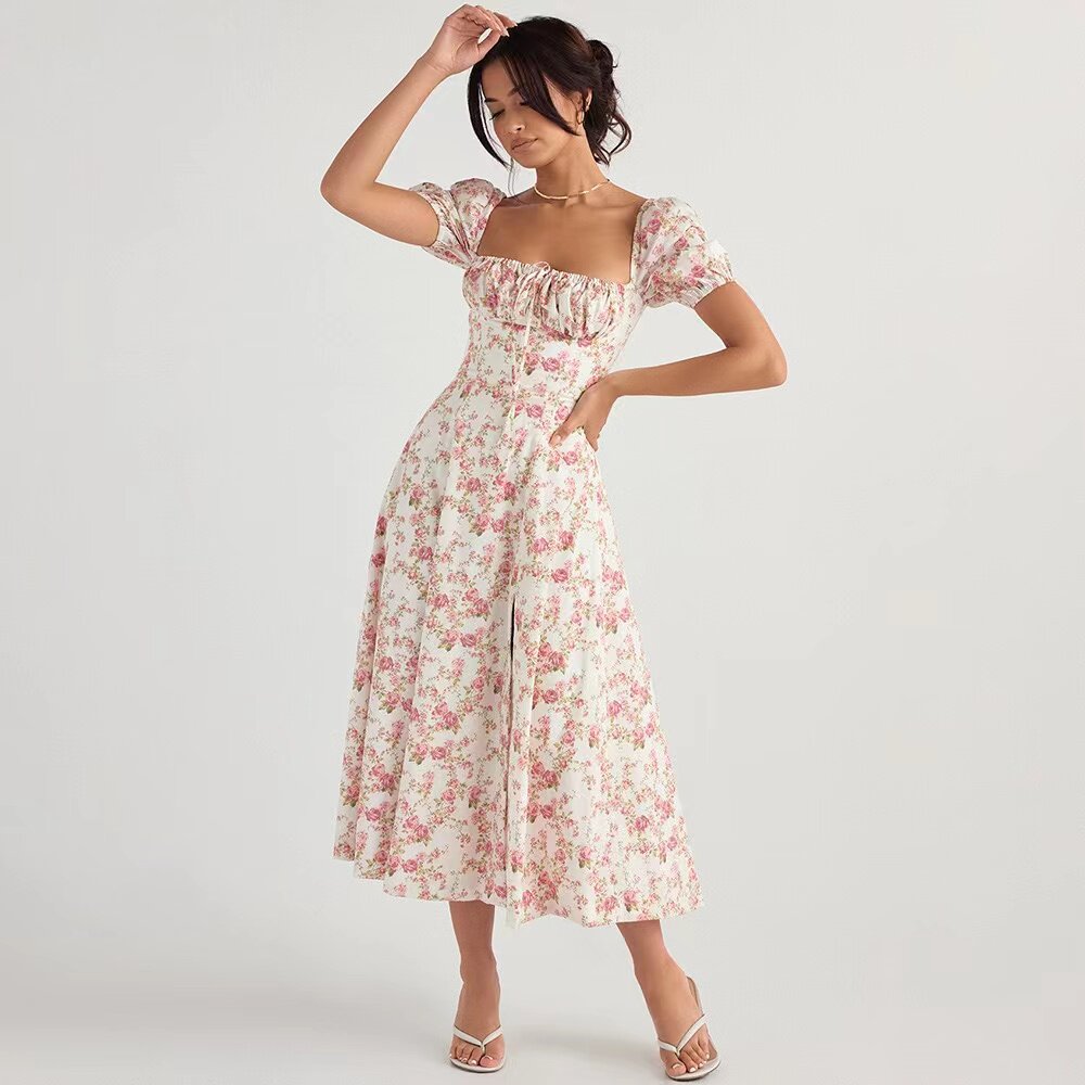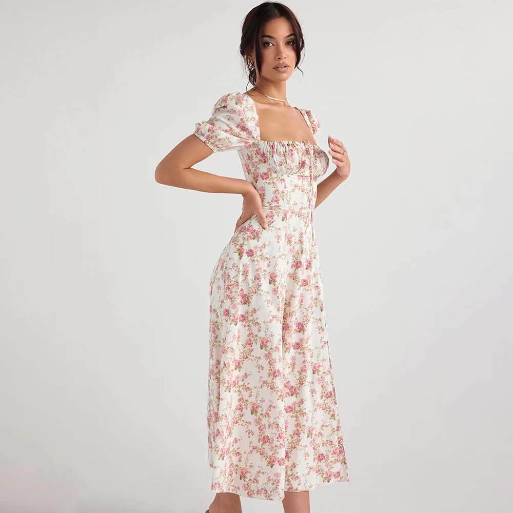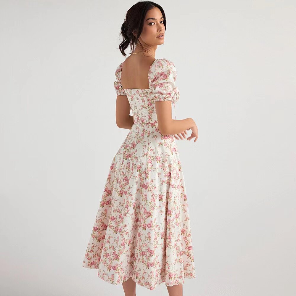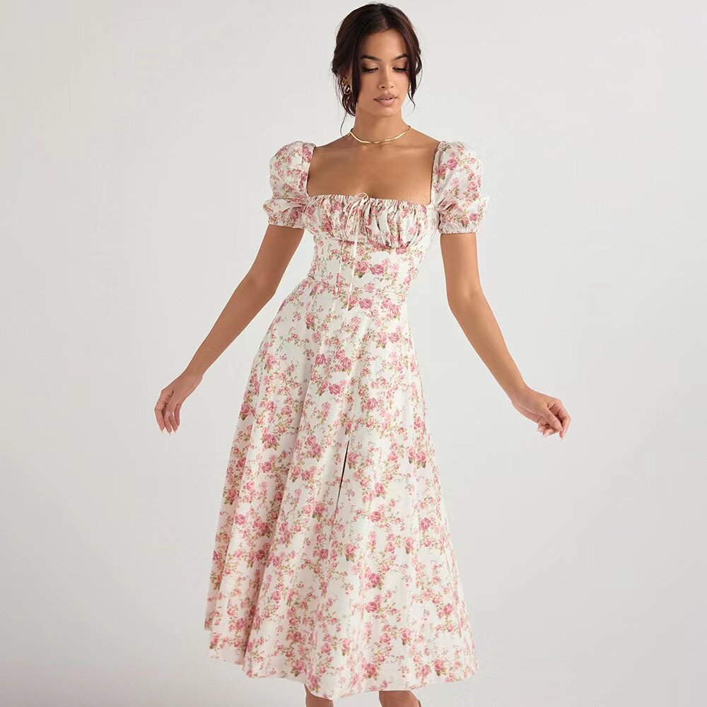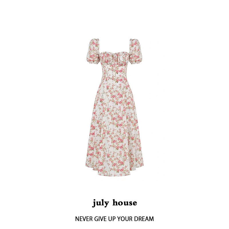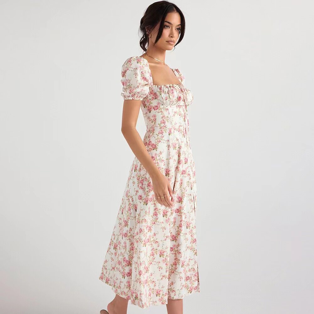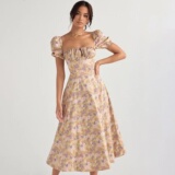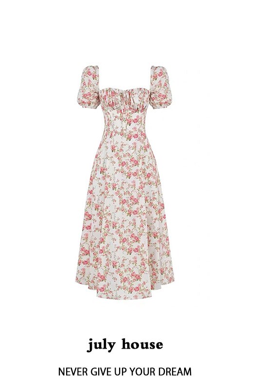 Дом CB Таллула новый цвет роза с цветочным принтом квадратный вырез длинная юбка с пышными рукавами и разрезом стиль феи чистое желание