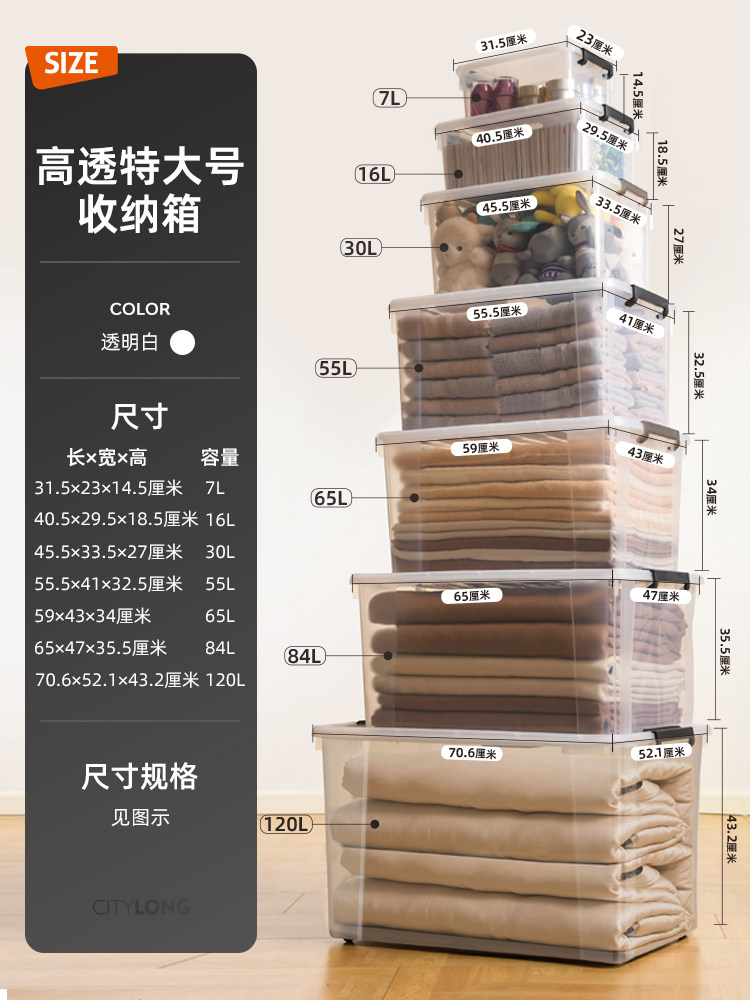 Прозрачный ящик для хранения, большая пластиковая система хранения, увеличенная толщина