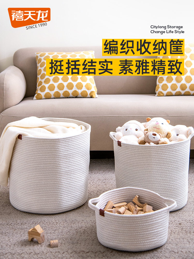 Корзина для хранения, плетеная корзина для белья, из хлопка и льна