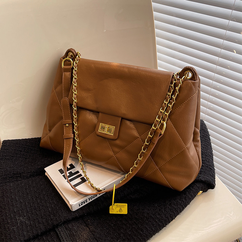Модная вместительная и большая цепь с ромбовидным узором, зимняя универсальная сумка через плечо