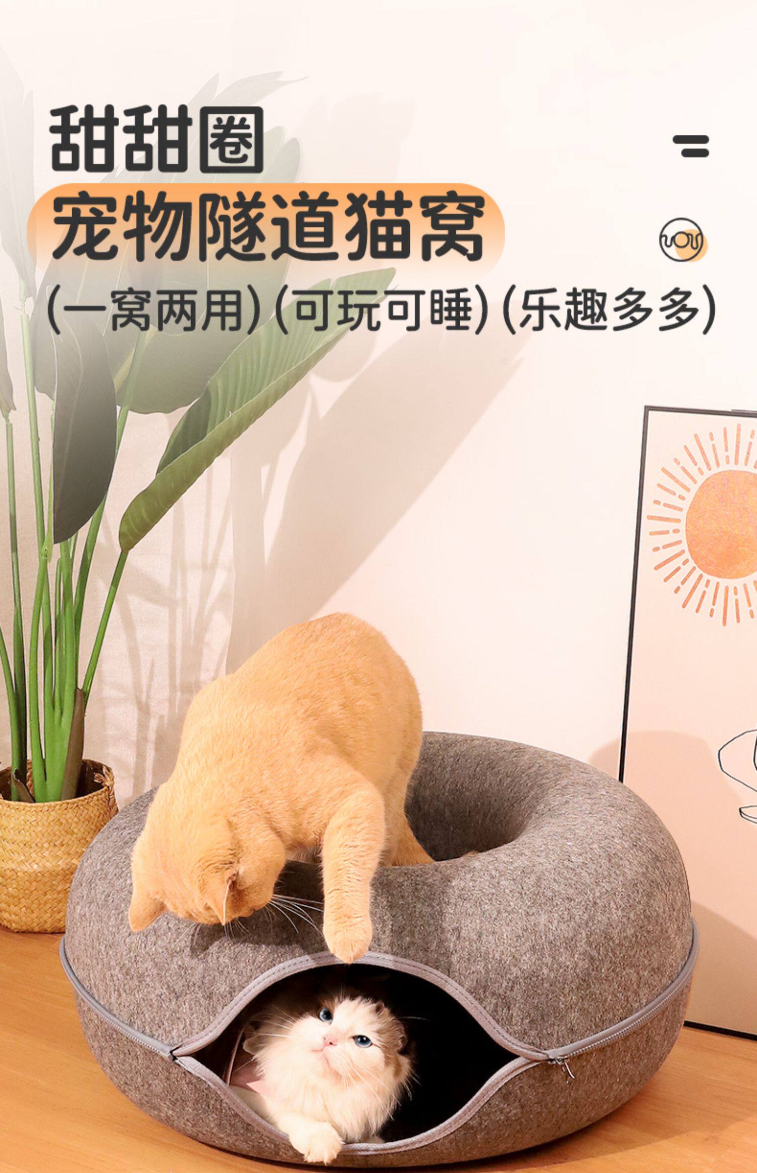 Универсальный туннель на четыре сезона, кролик, удерживающий тепло зимний пончик, кот
