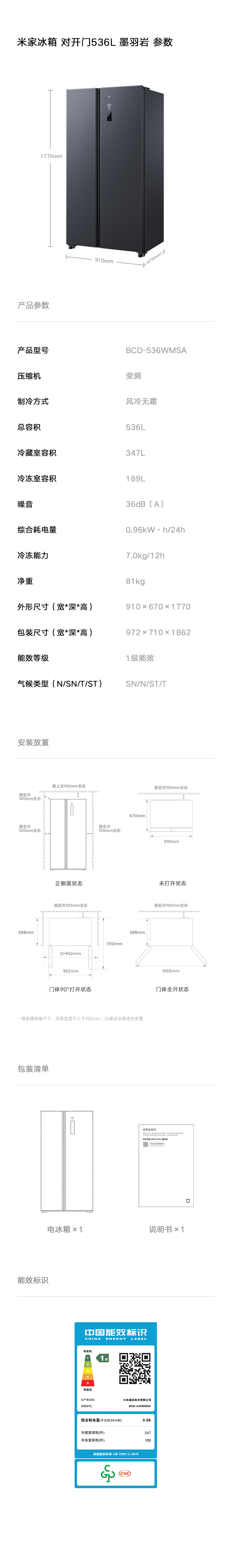 Xiaomi mi furniture Ice Set 536L Двойной открытой дверь на основе