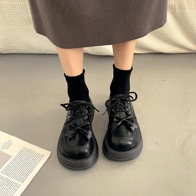 Весенняя обувь на платформе в английском стиле для кожаной обуви, черные лоферы, в британском стиле, коллекция 2023