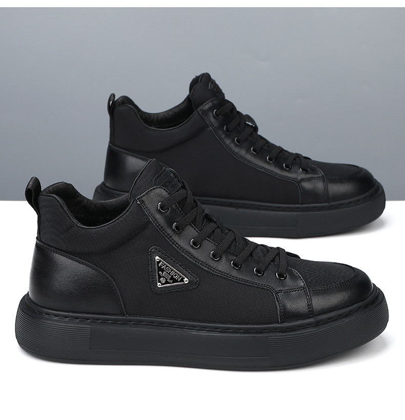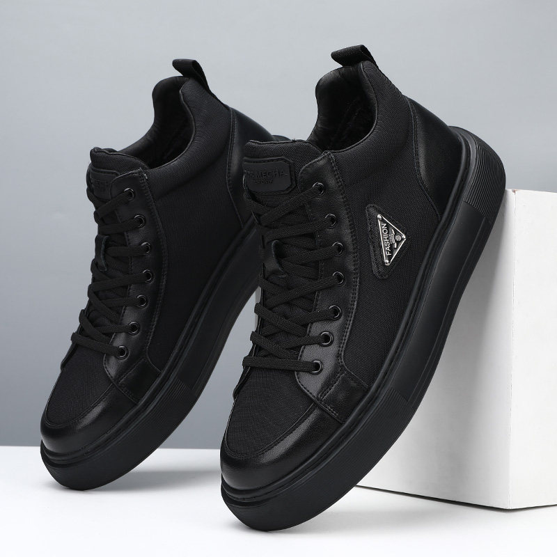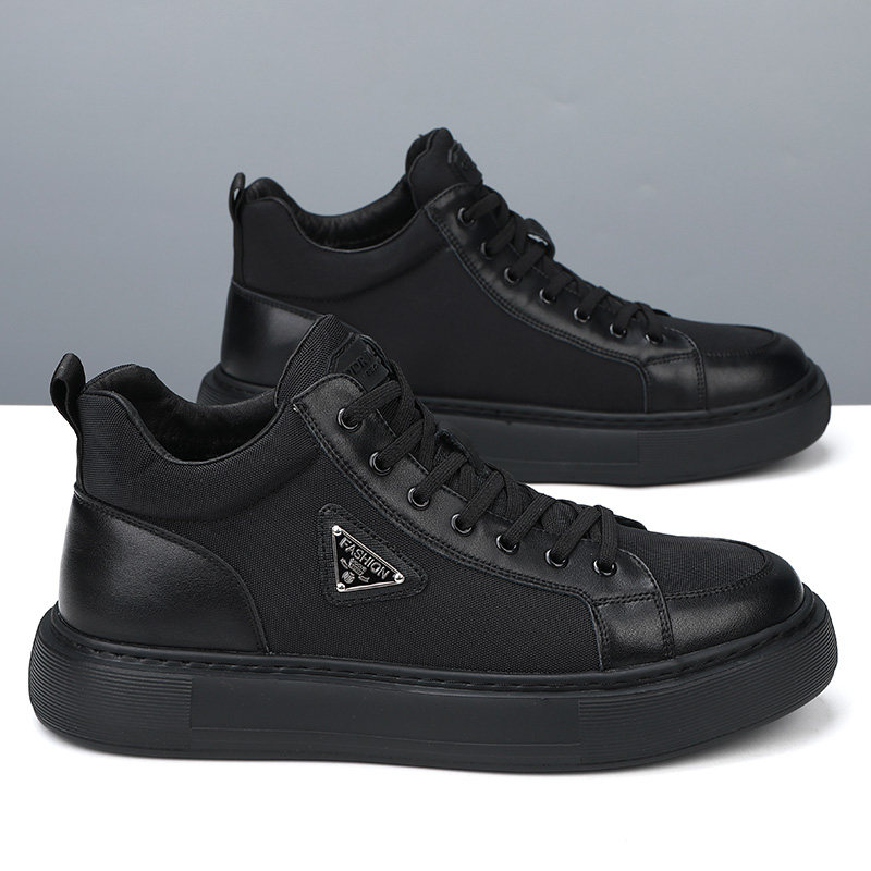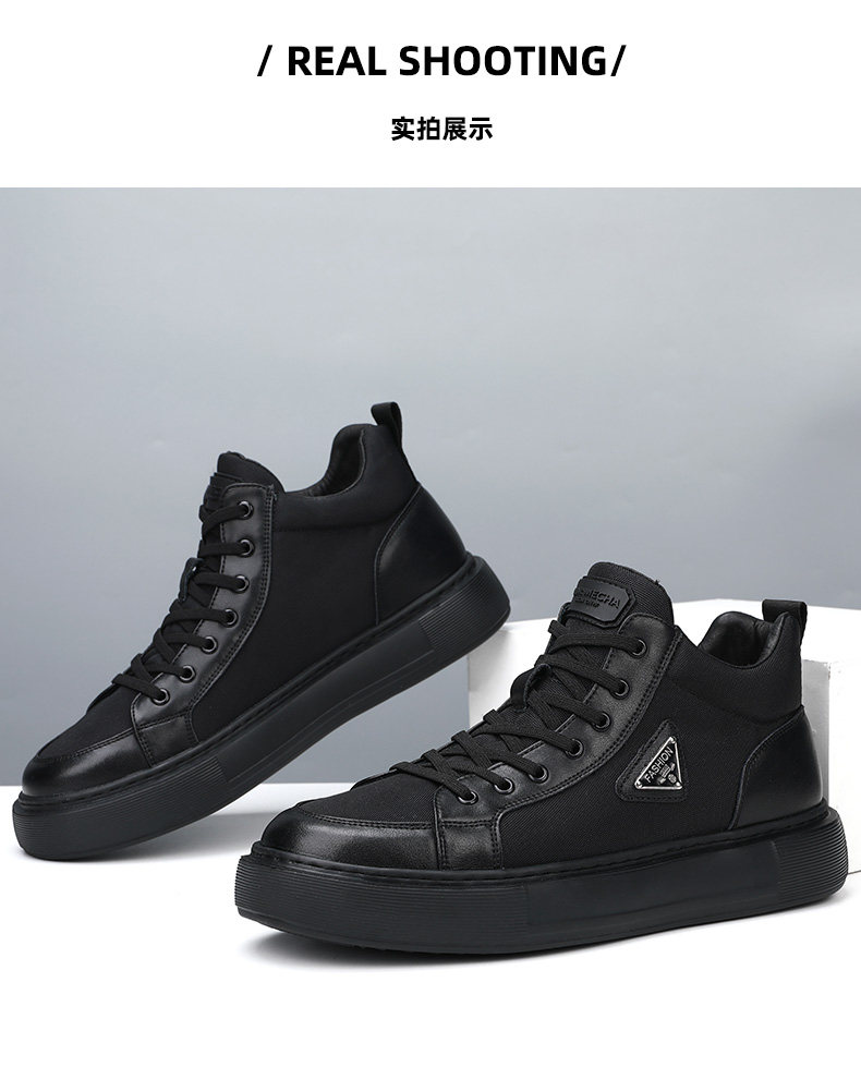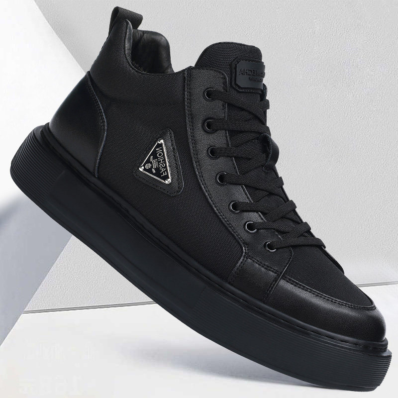 Мужская обувь из натуральной кожи, новинка 2024 года, осенний тренд, универсальная спортивная повседневная обувь с высоким берцем, мужские туфли на толстой подошве, увеличивающие рост