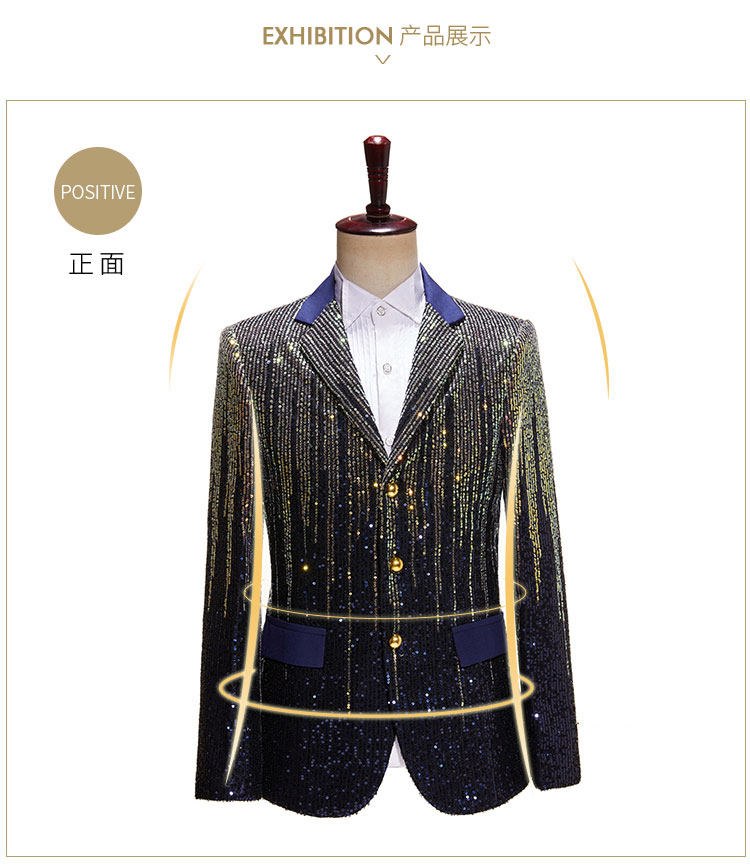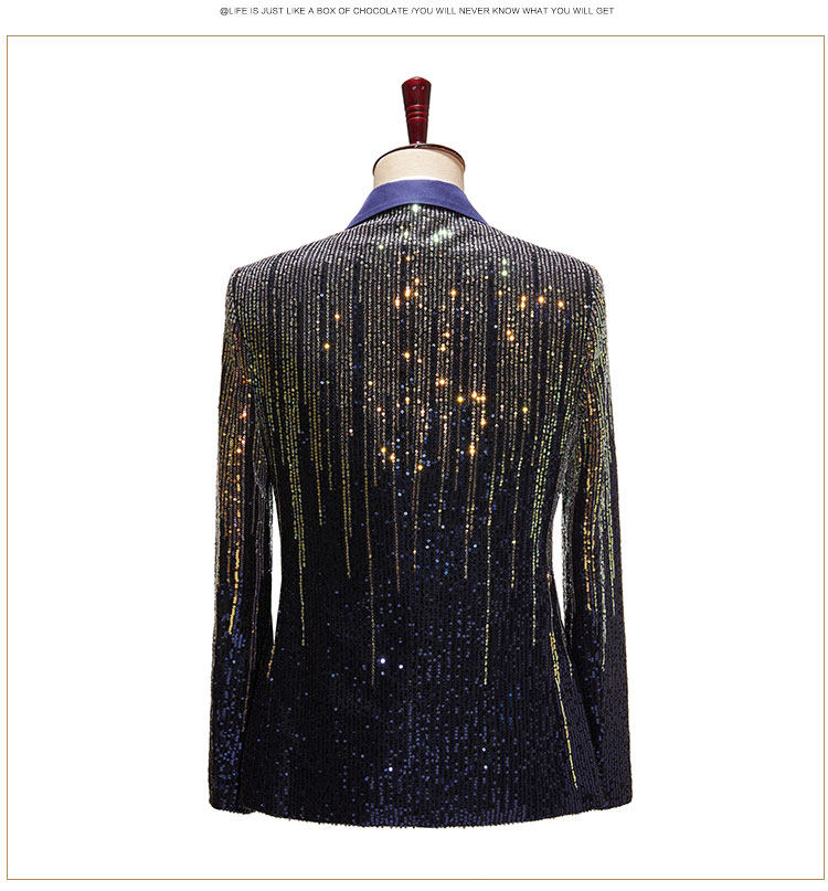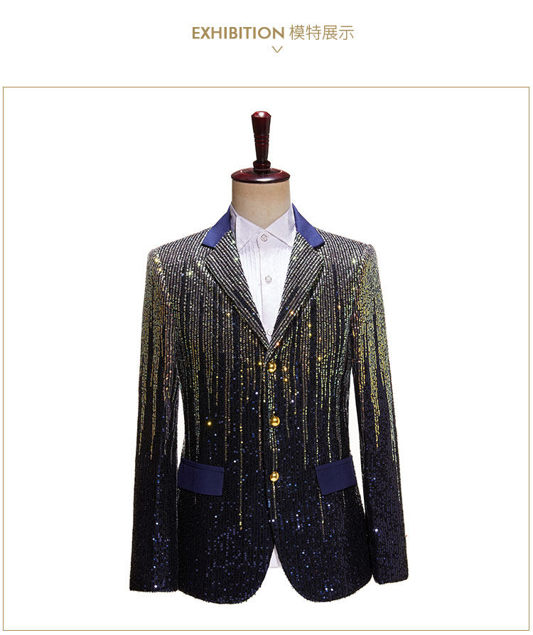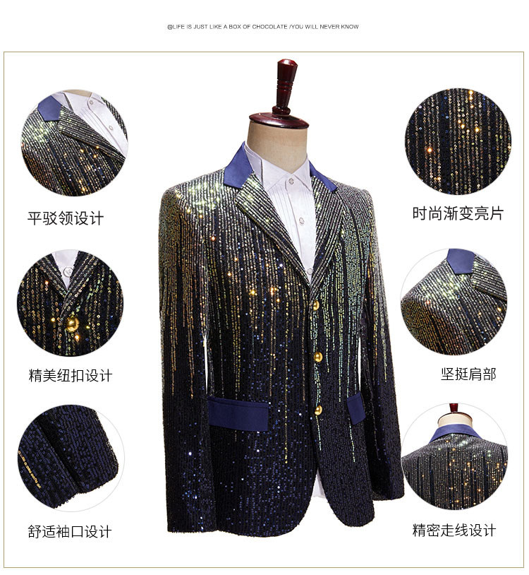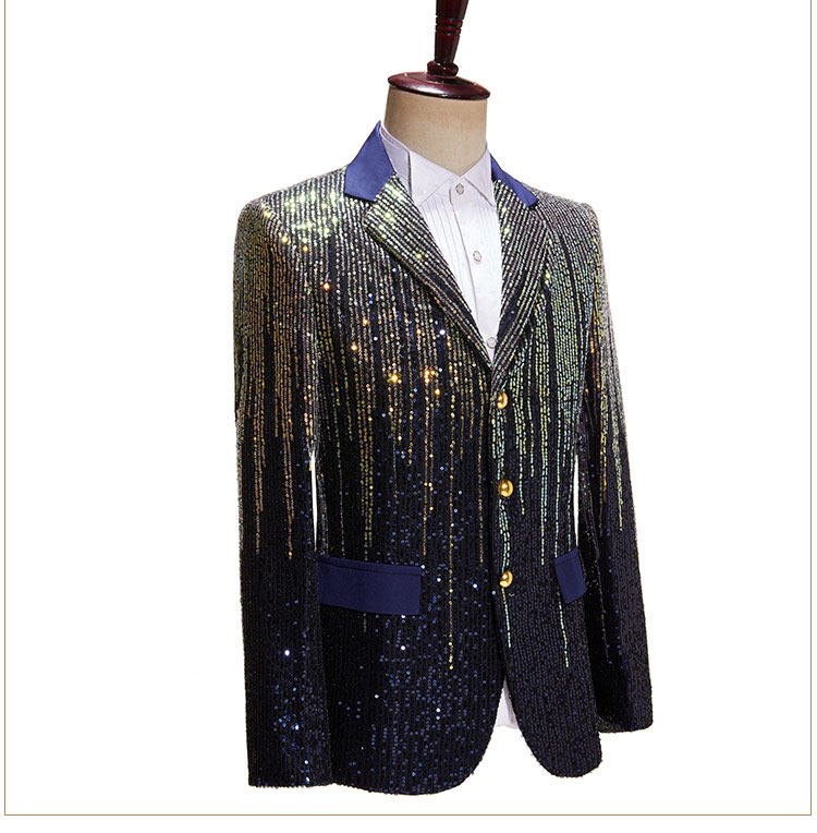 Модный мужской красочный костюм с метеоритным градиентом и пайетками, блестящий костюм для подиума с тремя пуговицами, куртка, одинарный костюм
