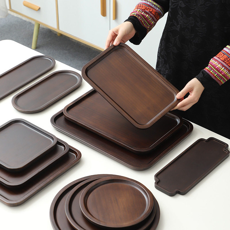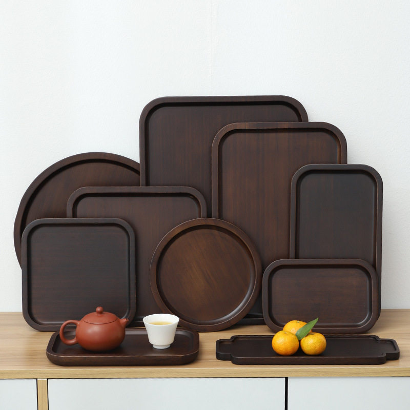 Японский стиль бамбуковый дровяной поддон для чайного поддона с темной чай