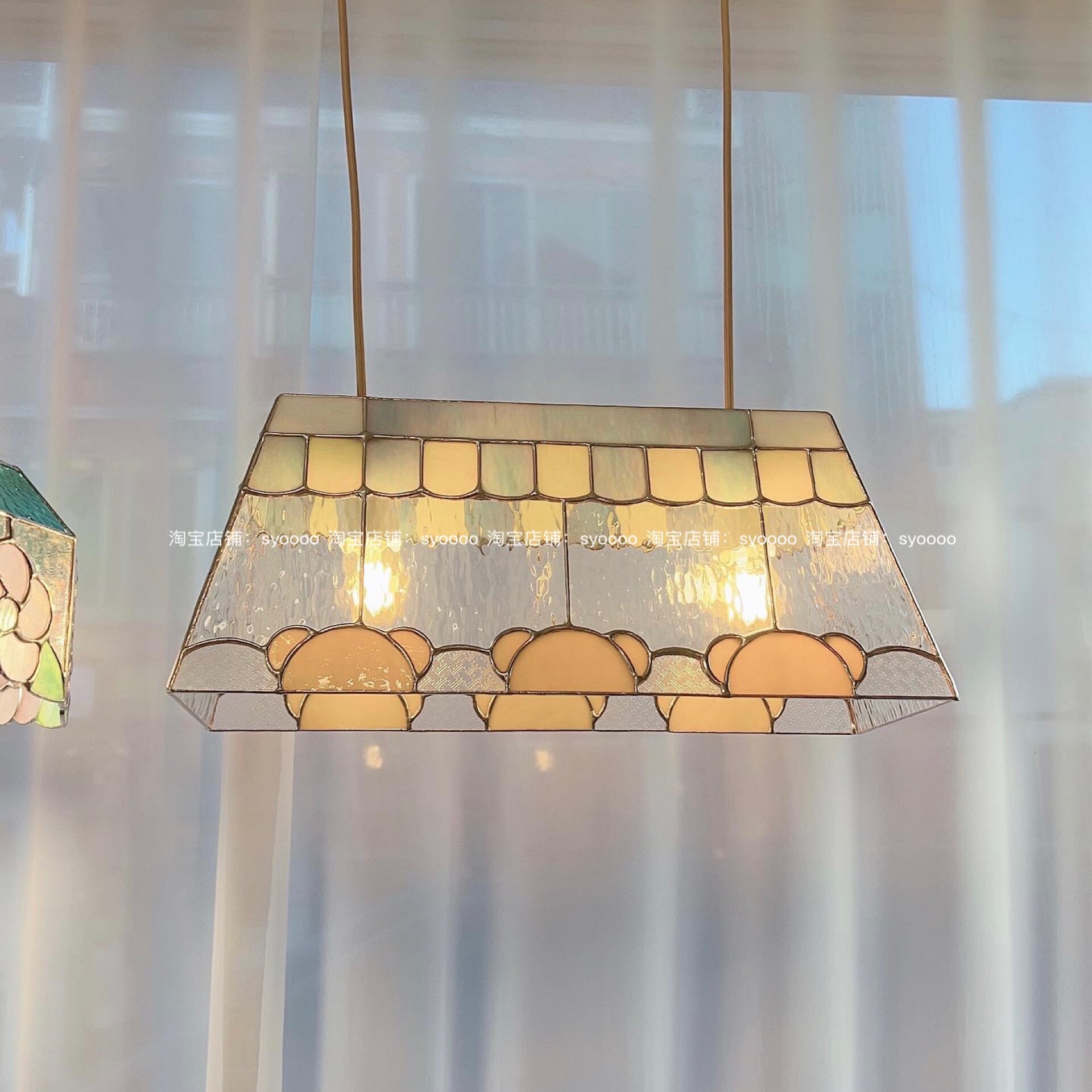 Syoooo Original | Медведь Основанные люстры Корейское цветовое стекло искусство Tiffany Church Ins Wind Lighting