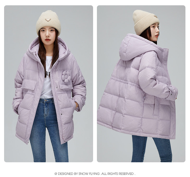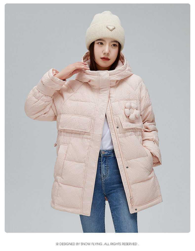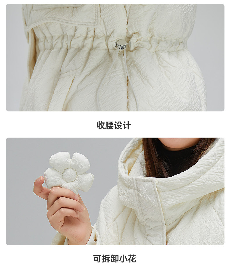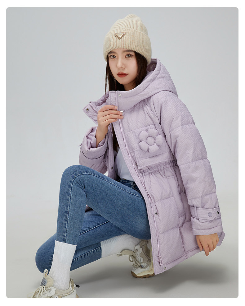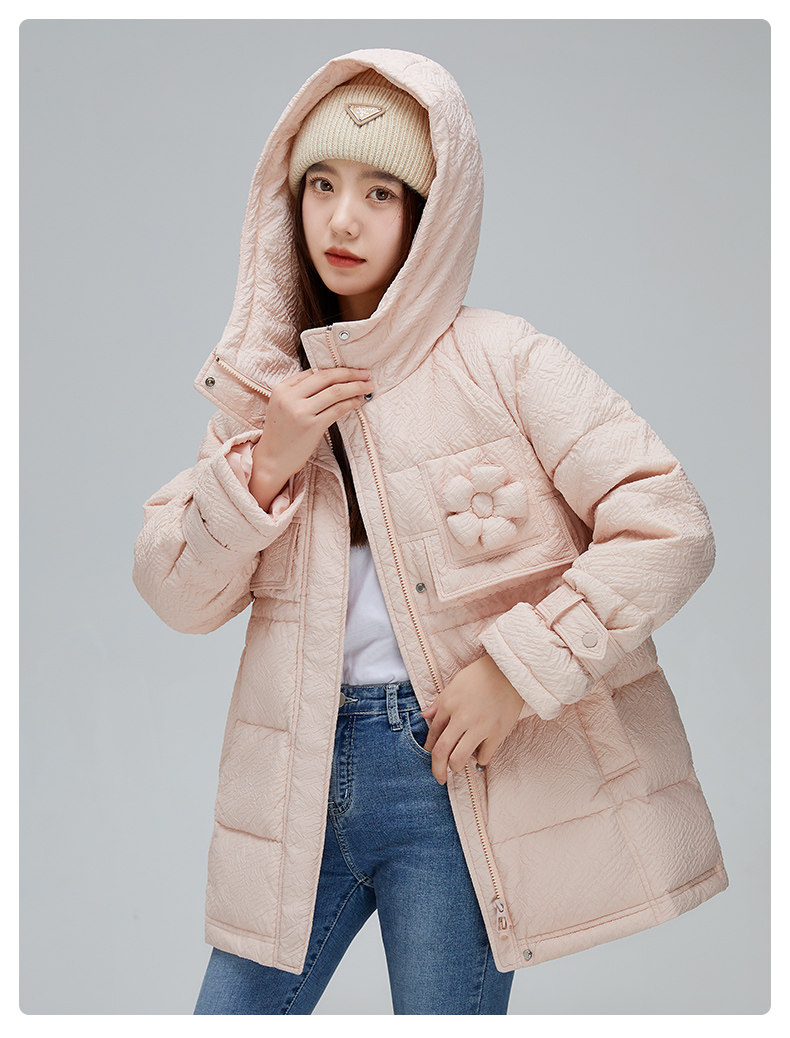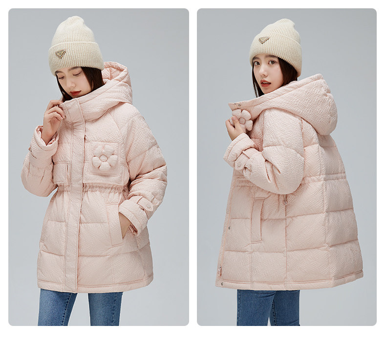 Демисезонный милый удерживающий тепло пуховик для отдыха в форме цветка, средней длины