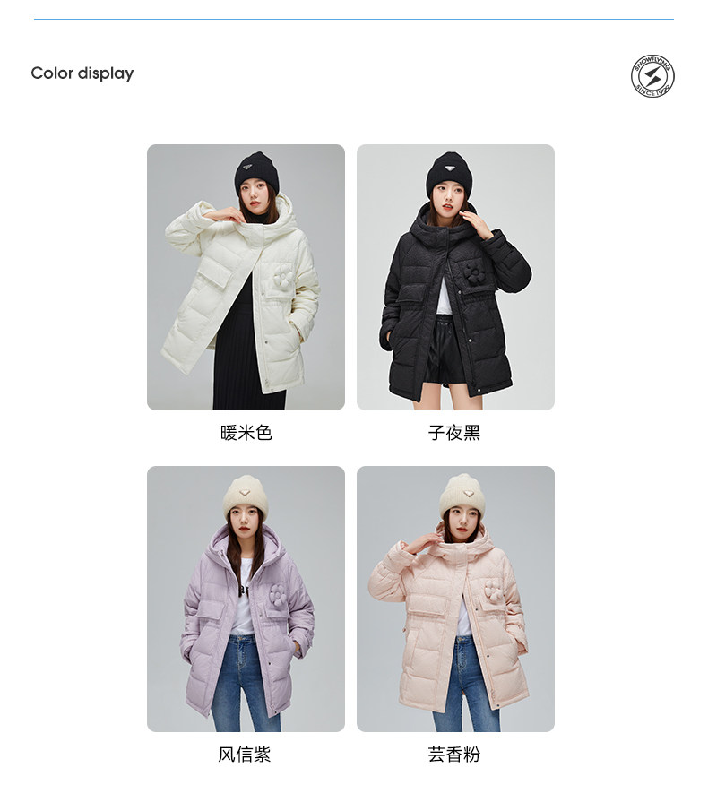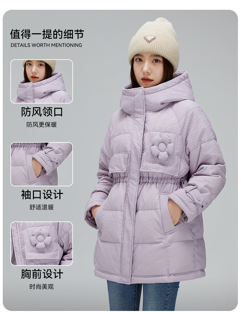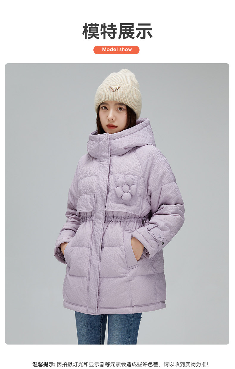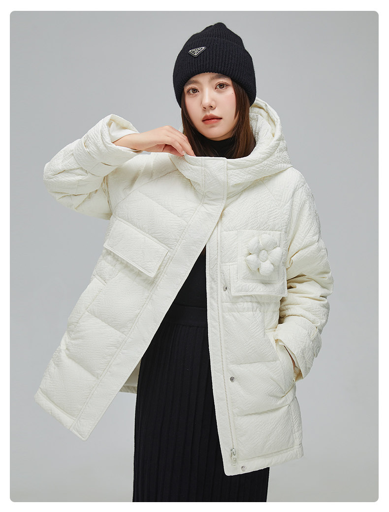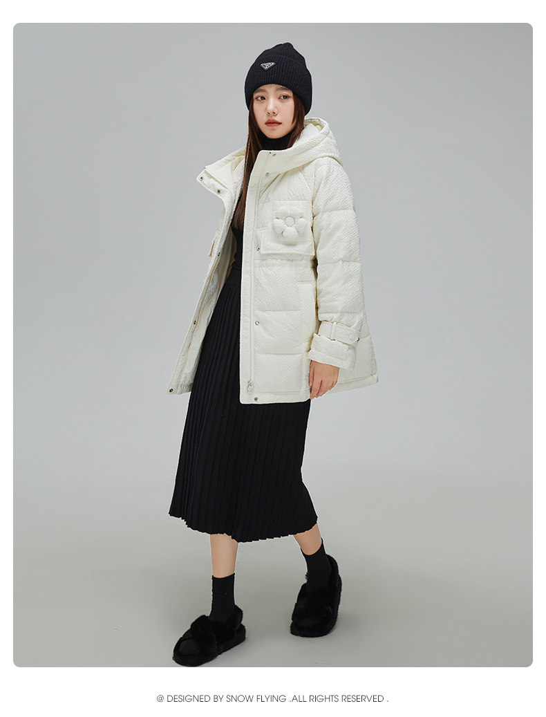 Демисезонный милый удерживающий тепло пуховик для отдыха в форме цветка, средней длины