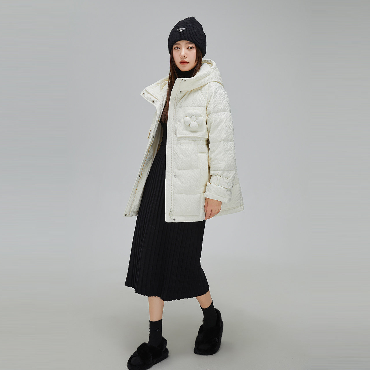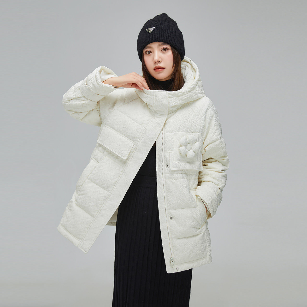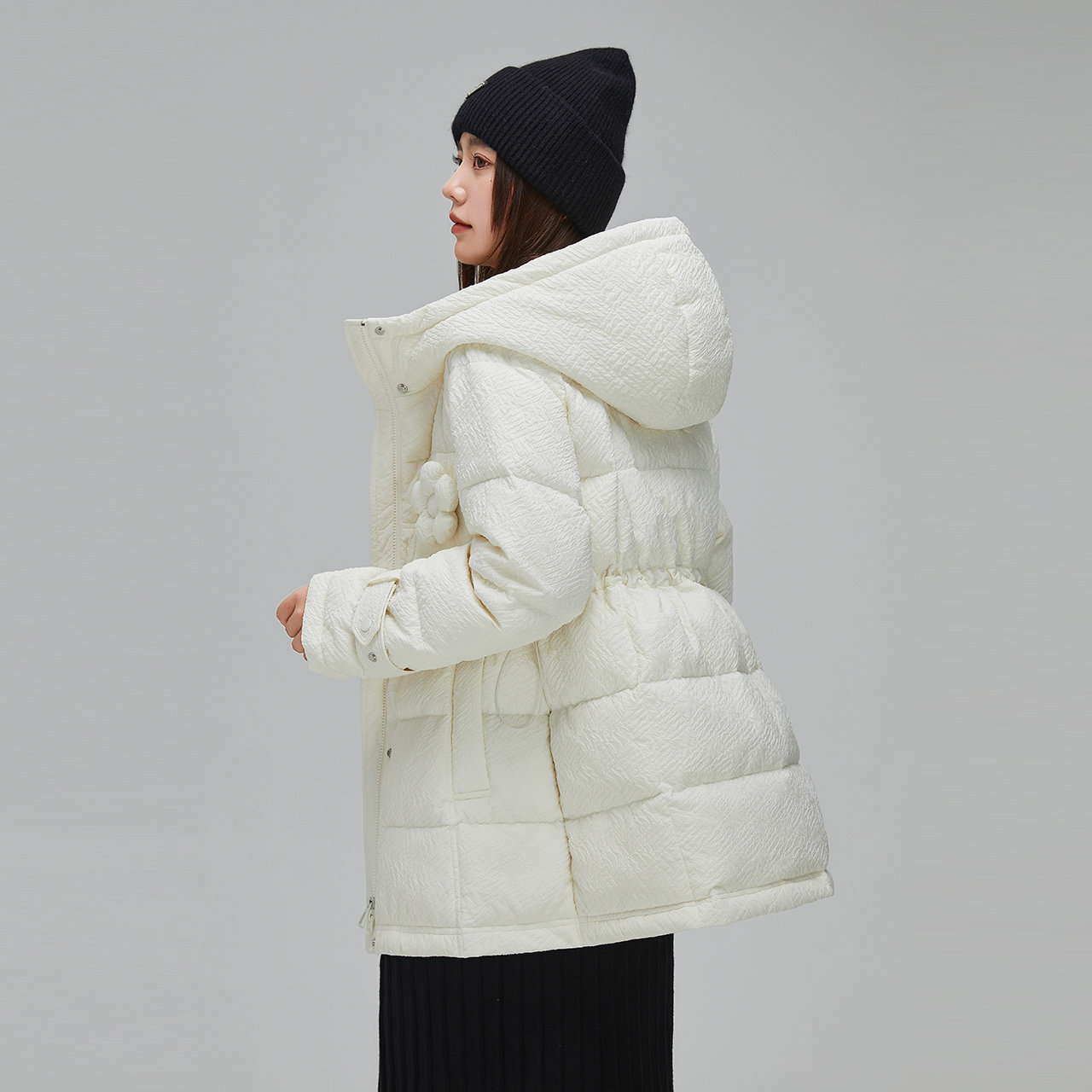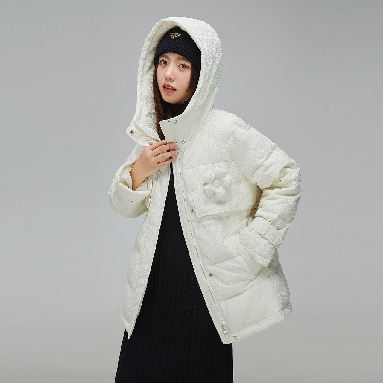 Демисезонный милый удерживающий тепло пуховик для отдыха в форме цветка, средней длины