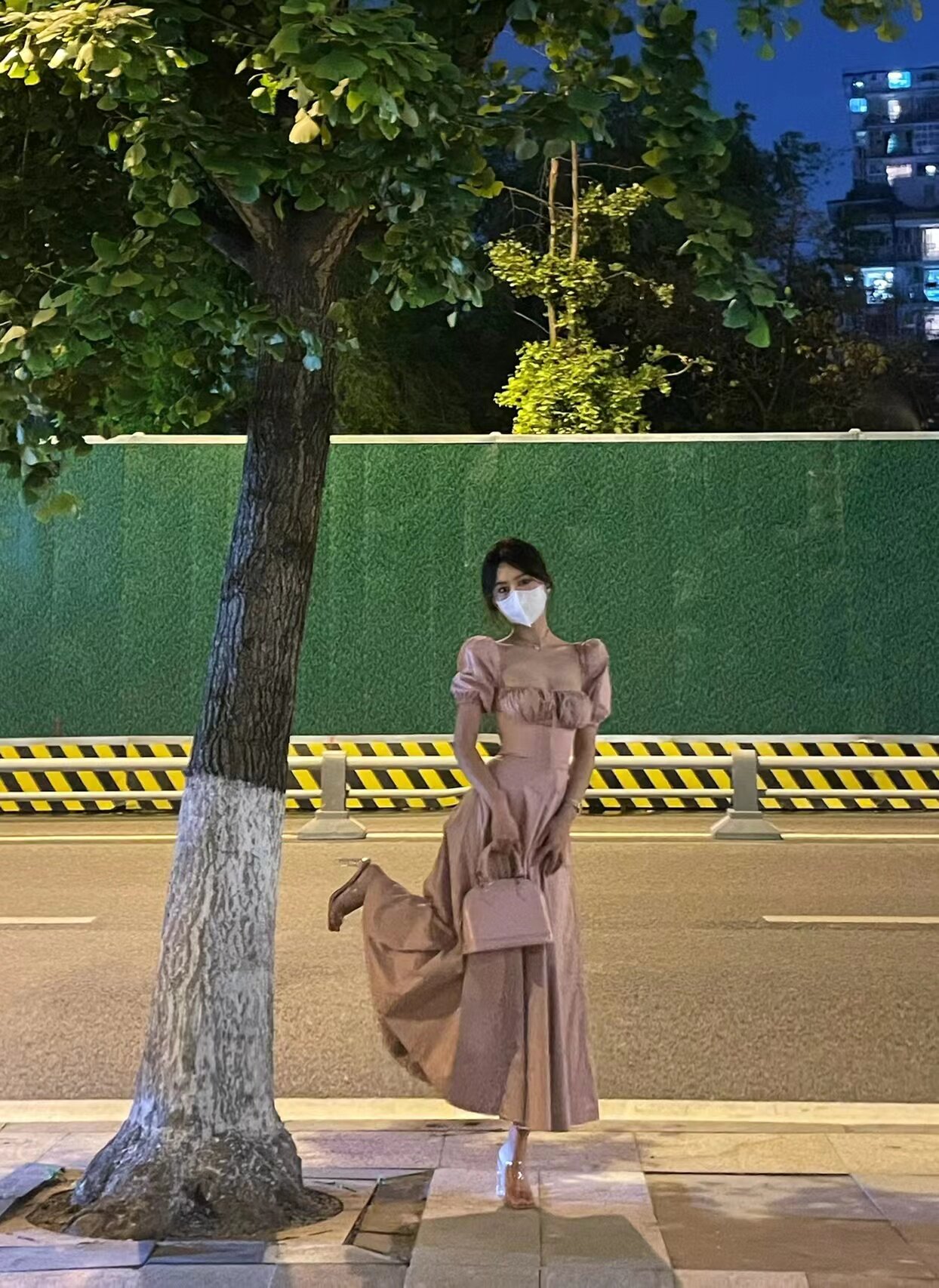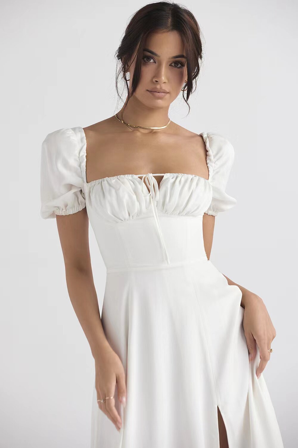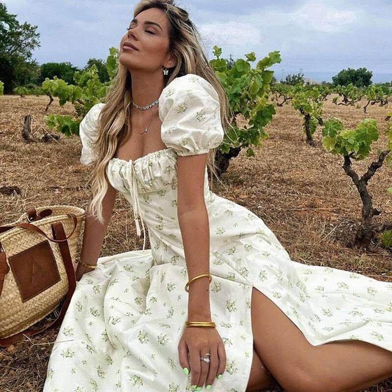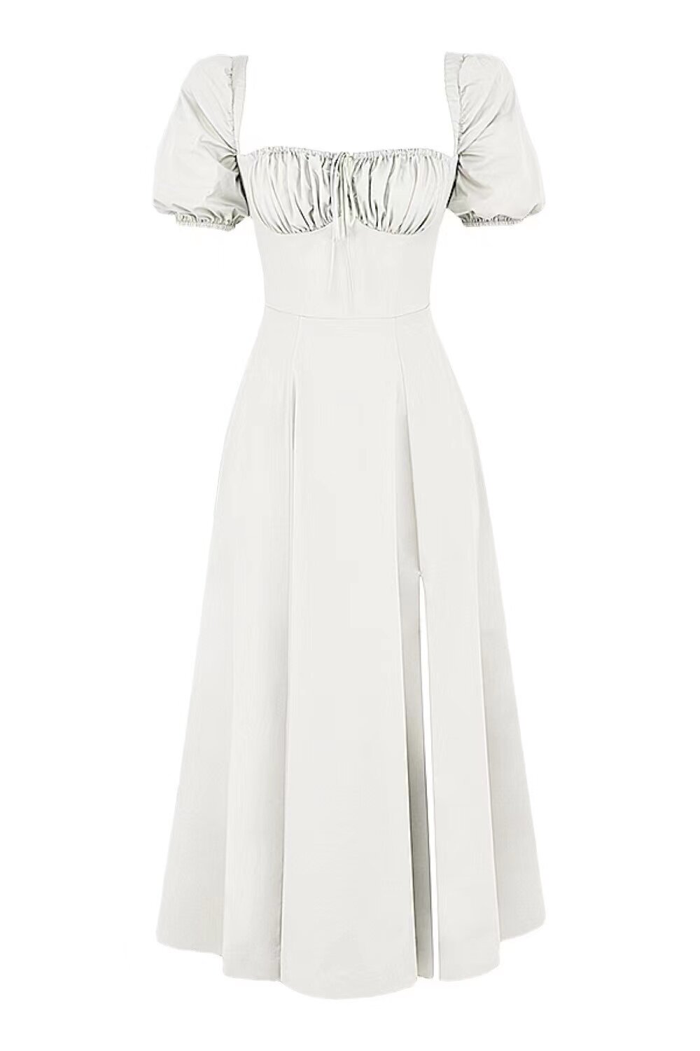 Однотонное платье, розовый корсет, длинная юбка, квадратный вырез, рукава фонарики