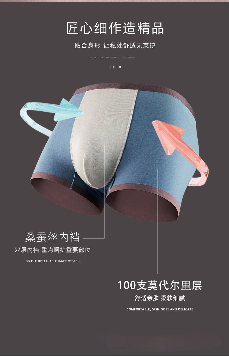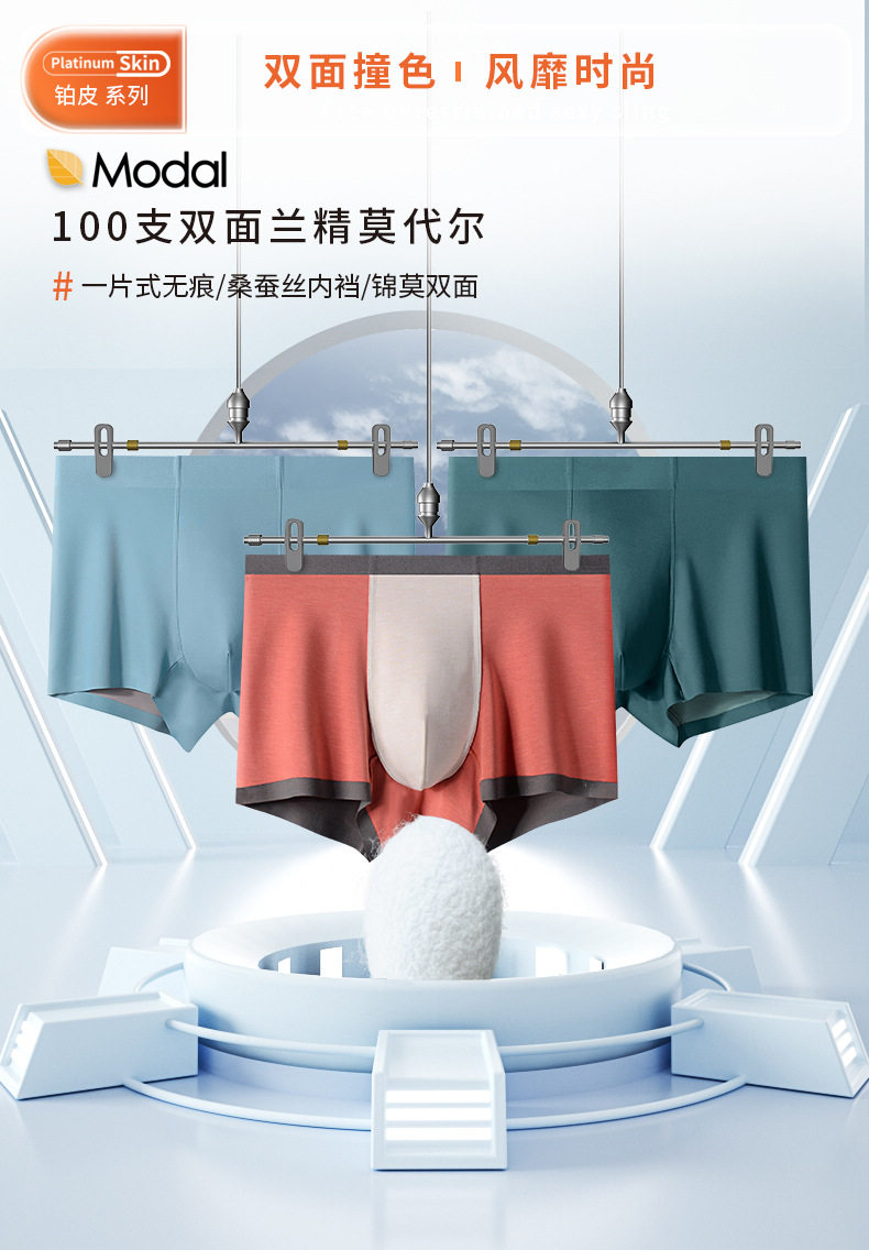 Интернет-знаменитость мужское нижнее белье 100-х годов Двустороннее орхидекс модальный треск ледяной шелковистый шелковистый плоский угловой шелковый антибактериальный цельный новый стиль