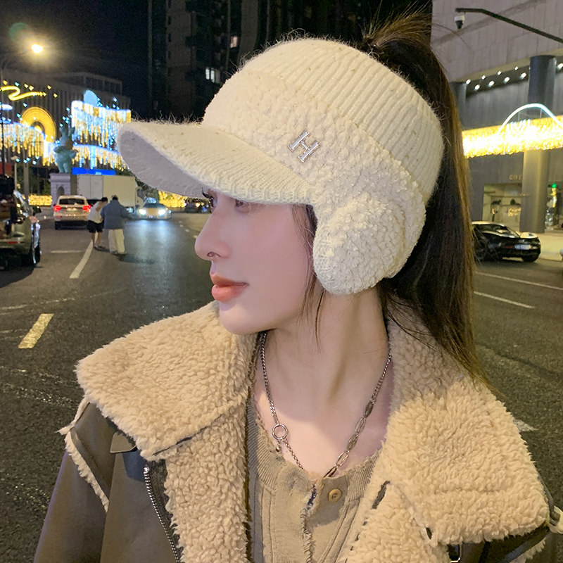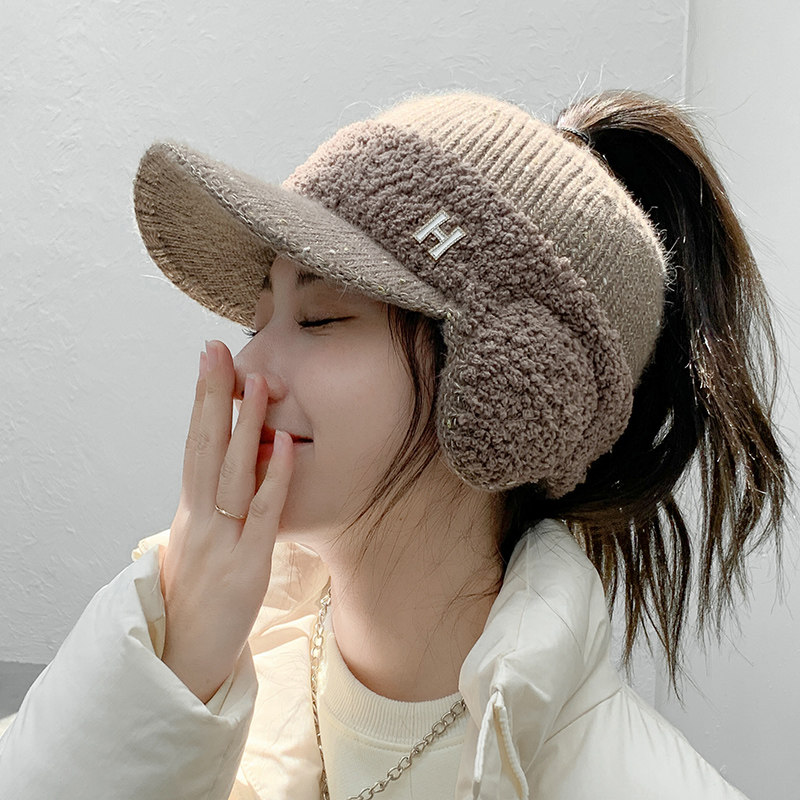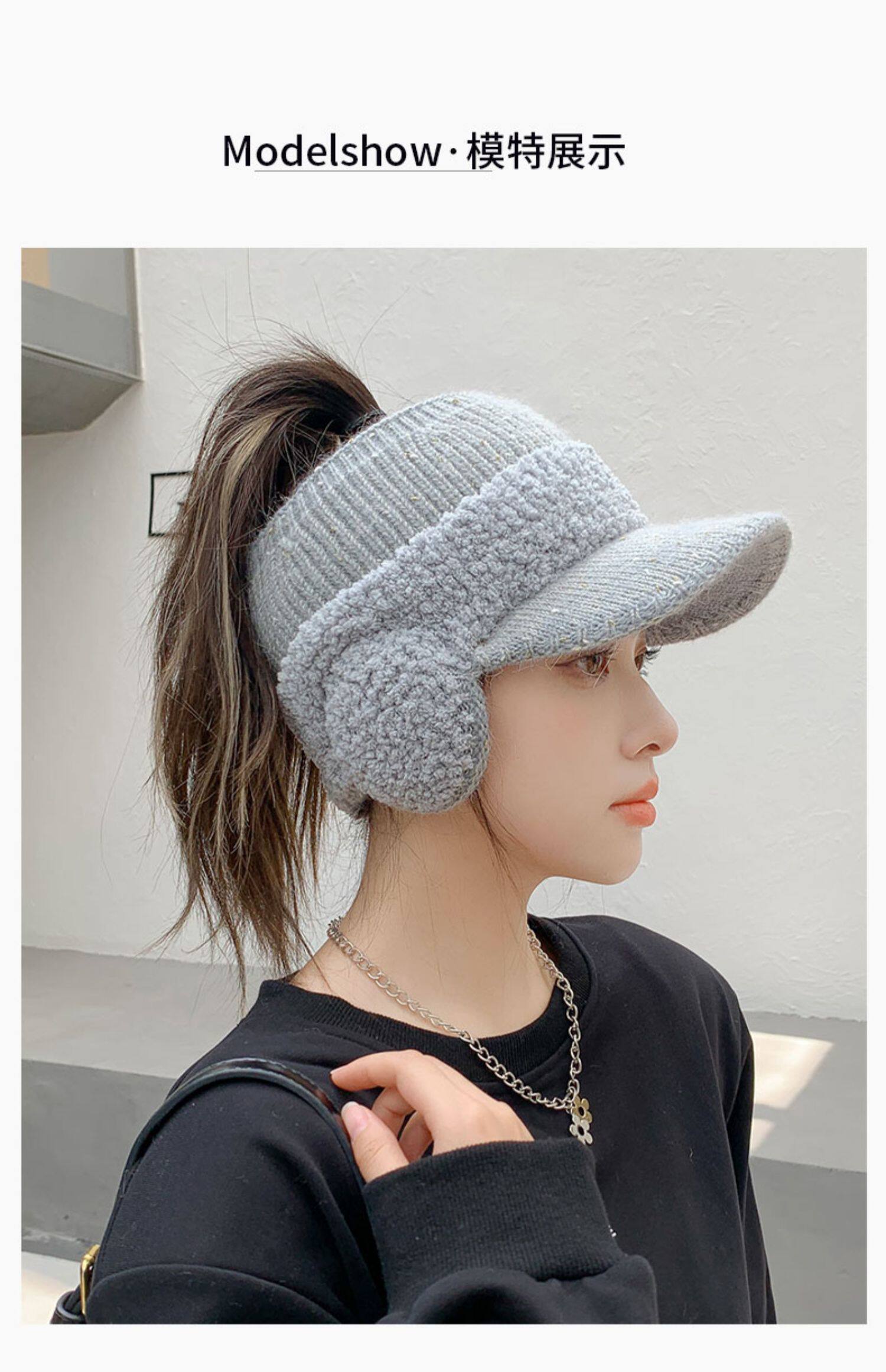 Зимняя шапка, демисезонные защитные наушники, кепка, зимний трикотажный шерстяной хвостик, для бега, защита для ушей