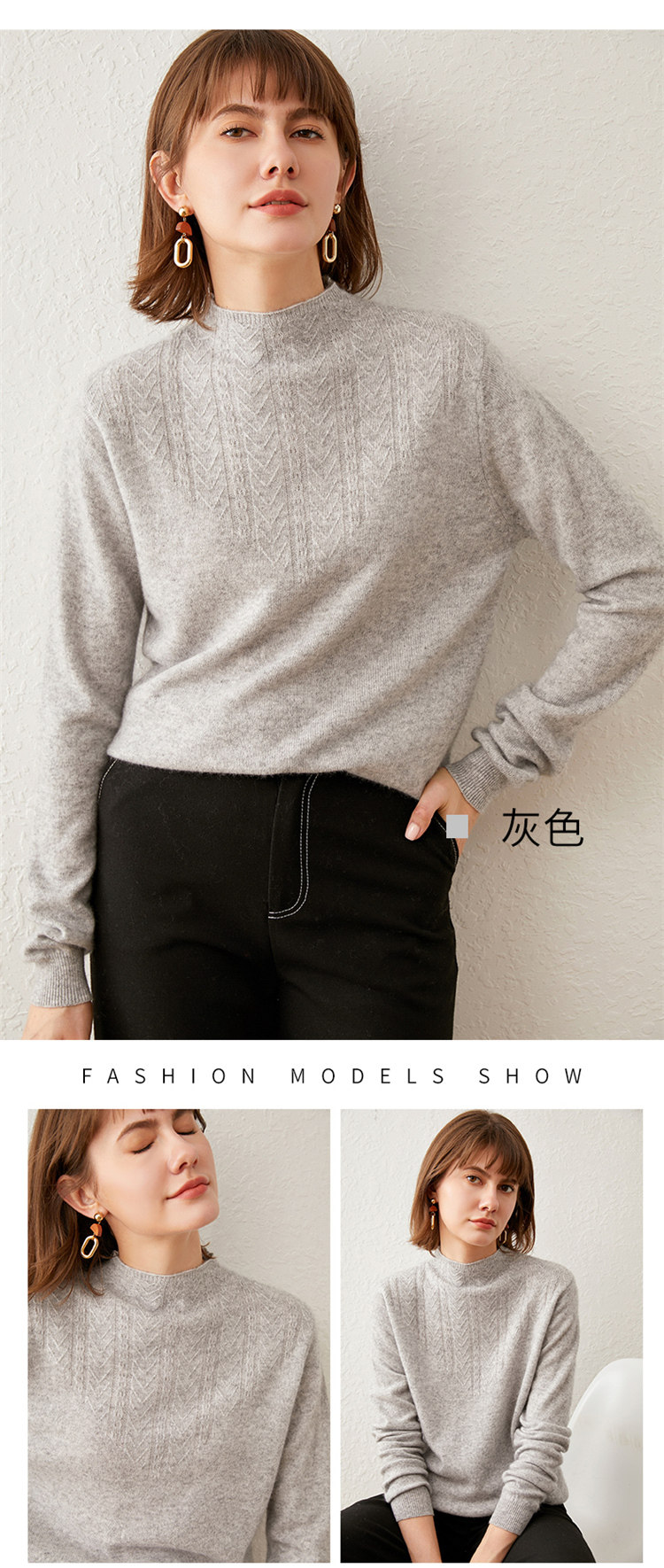 Демисезонный свитер, шерстяные базовые приятные телу трикотажные нарукавники, свободный крой