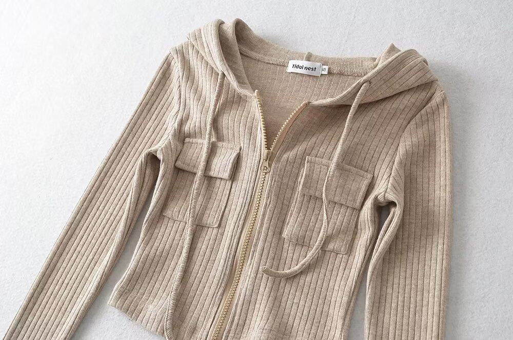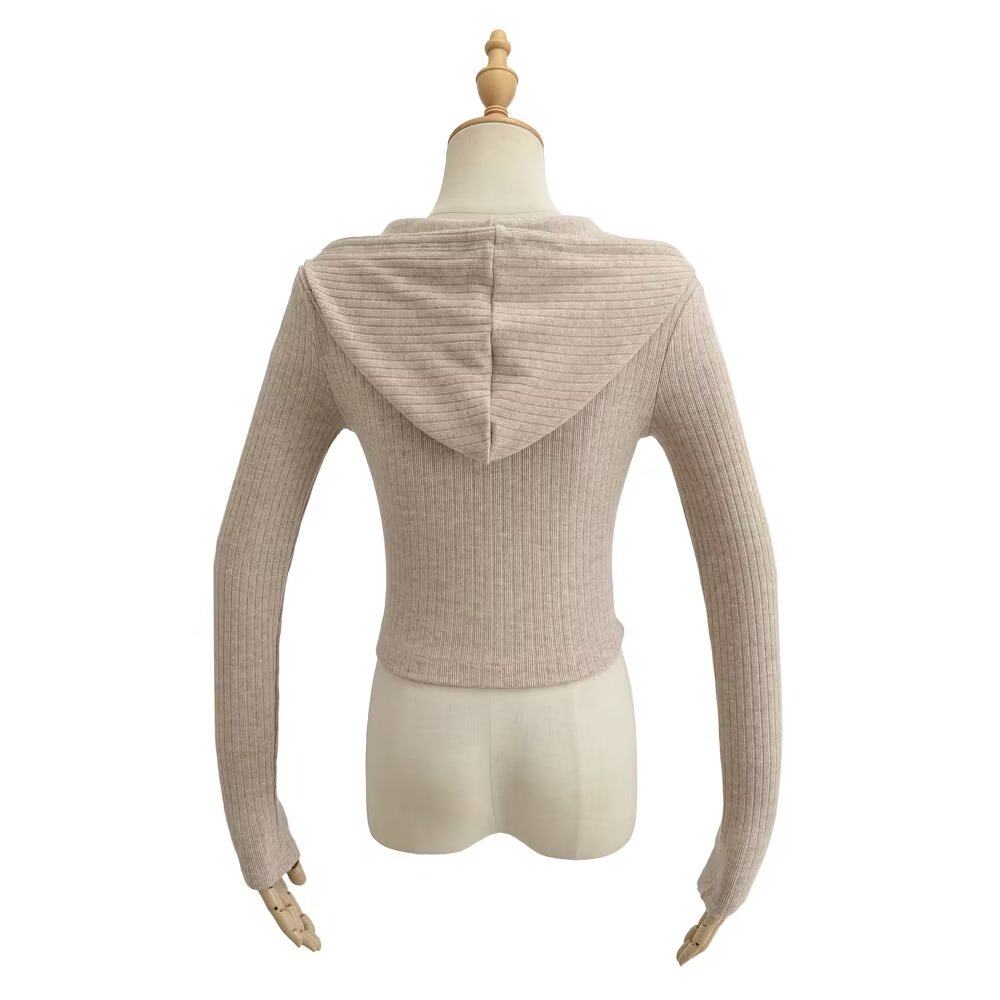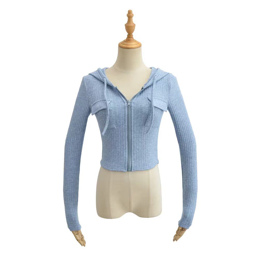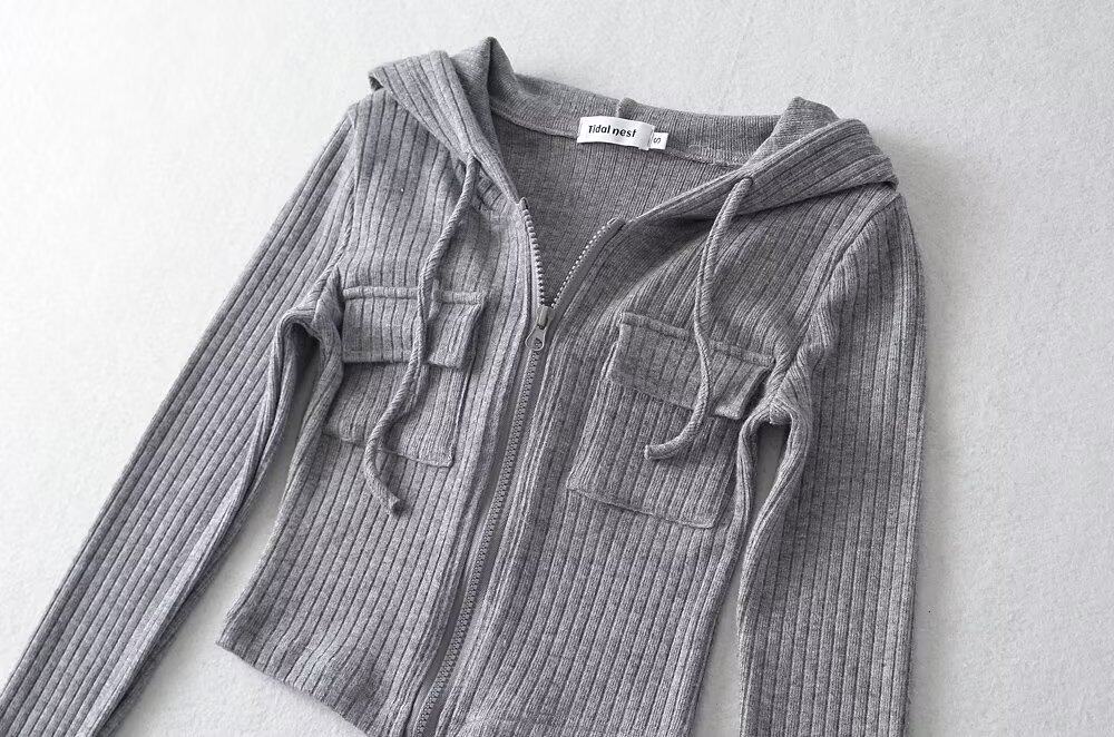 Трикотажная короткая толстовка с капюшоном с молнией, куртка, европейский стиль