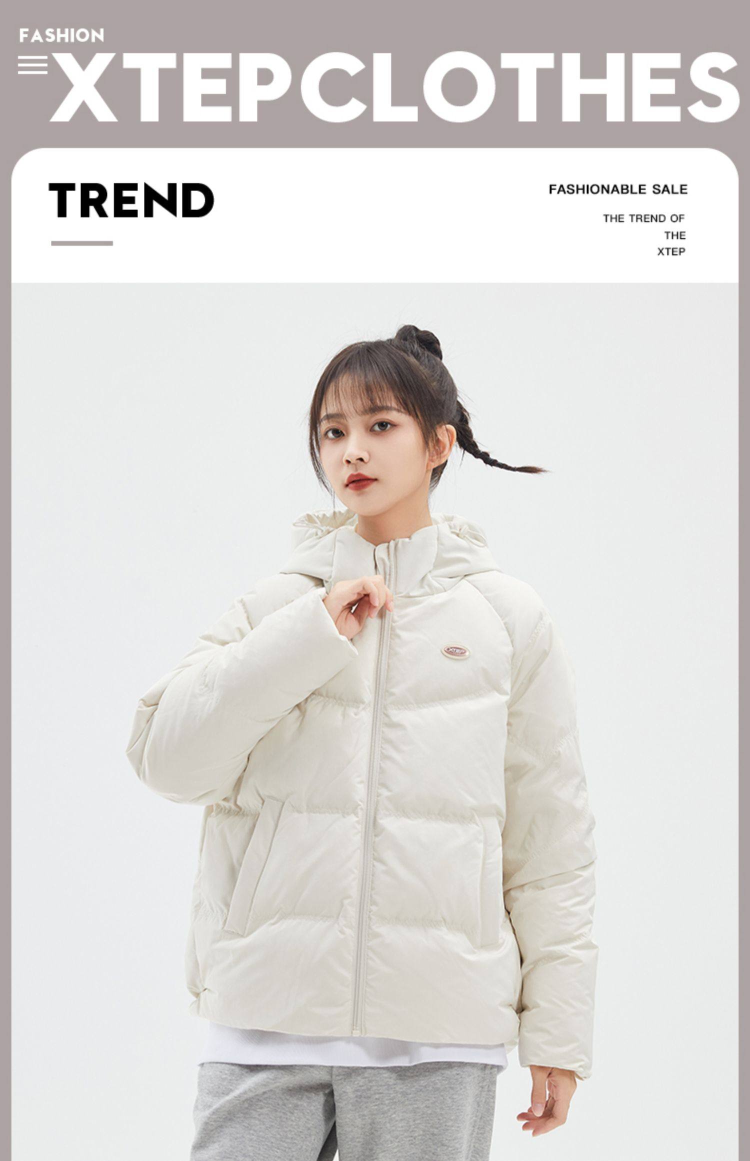 Xtep, демисезонный пуховик, утепленная куртка для отдыха, оверсайз