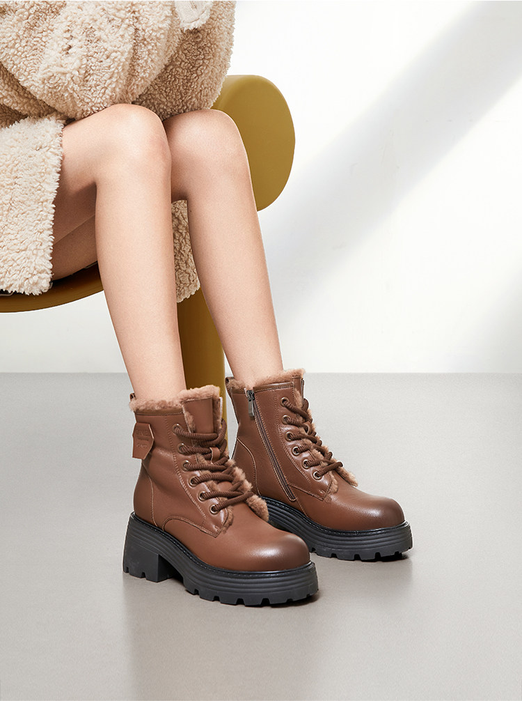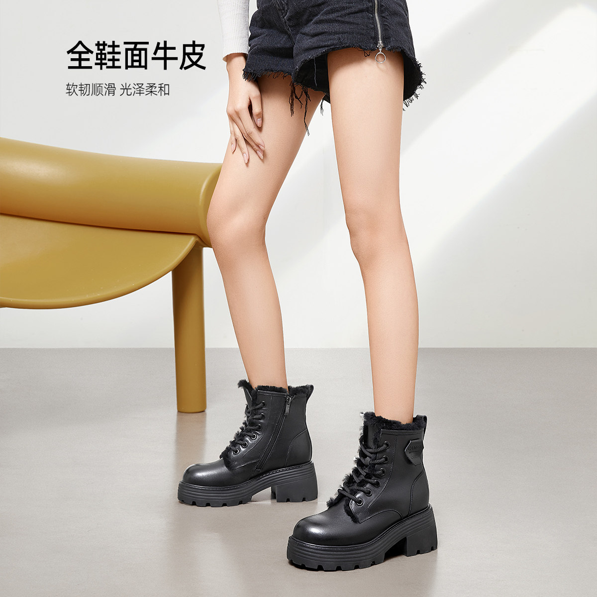 Martens, зимние короткие сапоги в английском стиле, утепленная обувь на платформе, 2022, из натуральной кожи