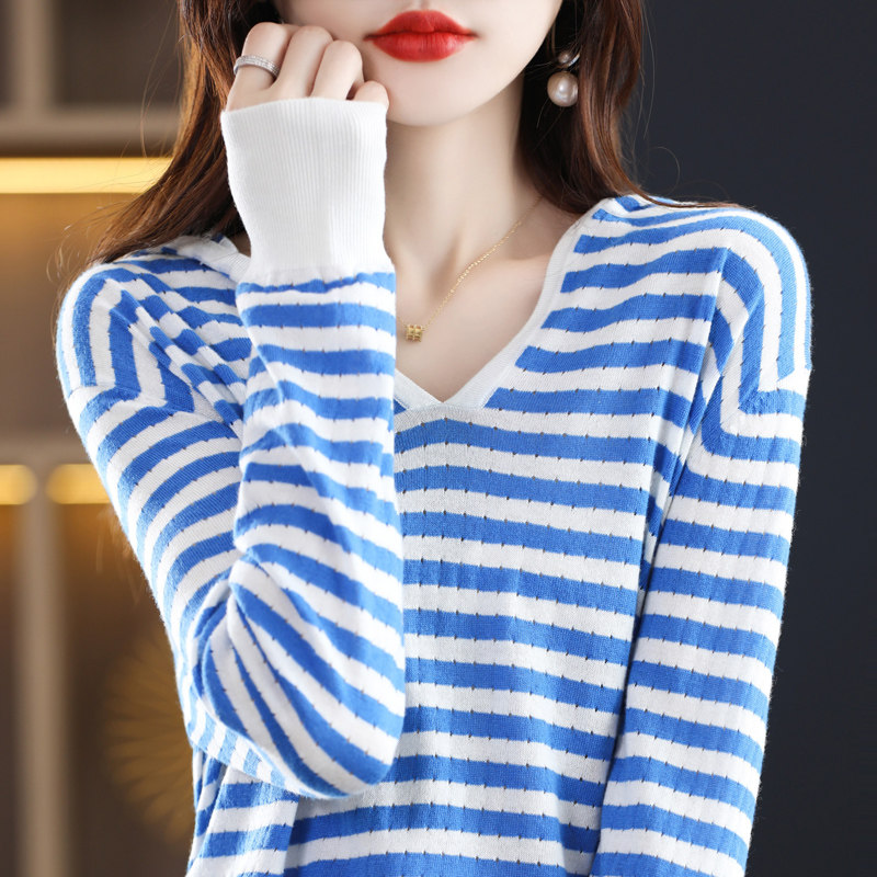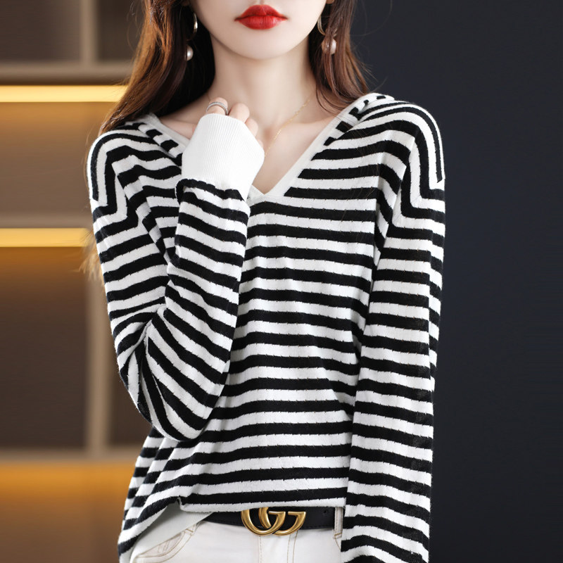Популярный осенне-зимний полосатый кашемировый свитер для женщин, модный и уменьшающий возраст, свободный и тонкий, универсальный пуловер, топ и нижняя рубашка для женщин.