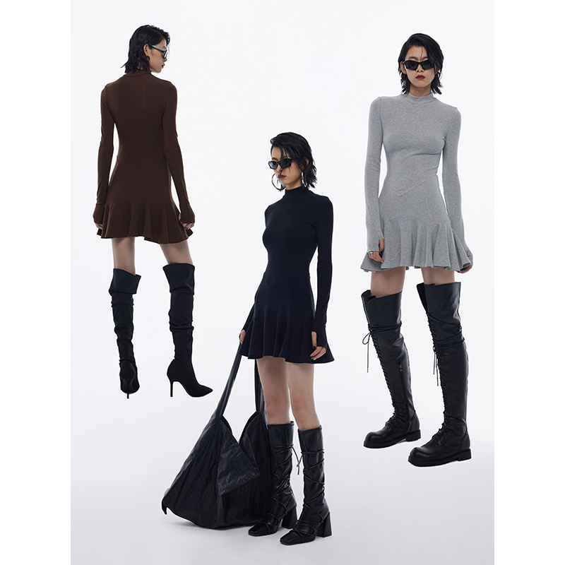 Оригинальный дизайнерский лонгслив, осеннее базовое платье, городской стиль
