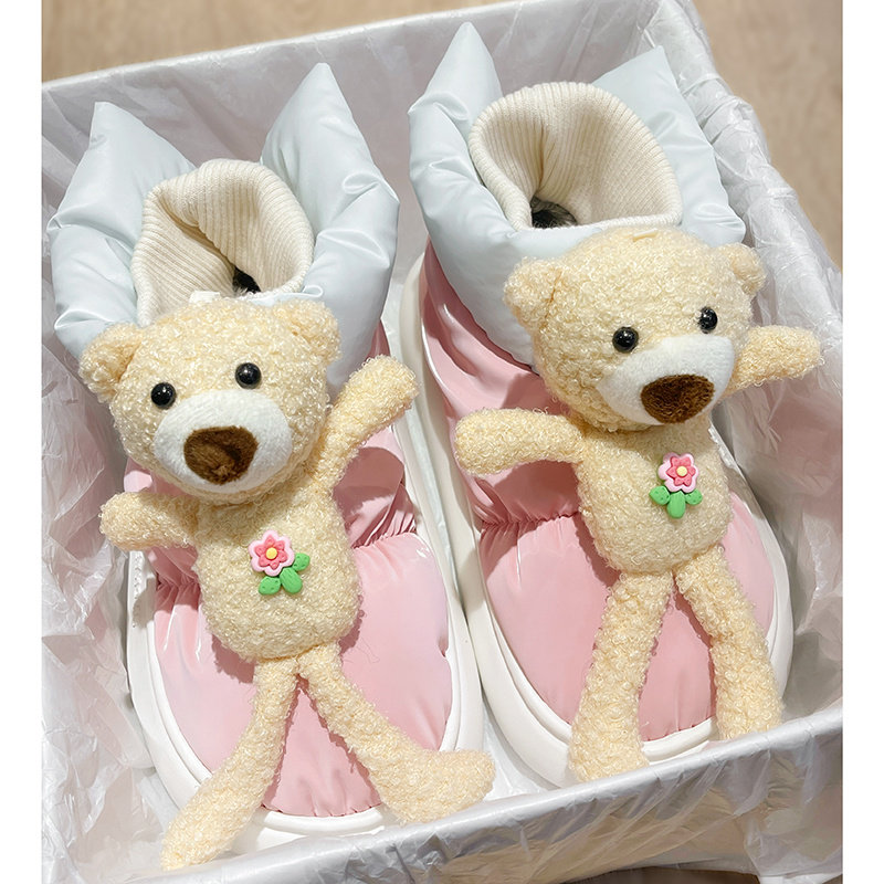 Флисовые зимние мультяшные сапоги, милые нескользящие удерживающие тепло ботинки на платформе, 2022