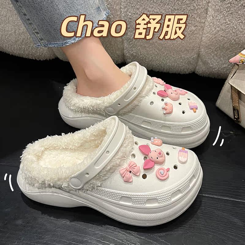 Милая розовая флисовая удерживающая тепло демисезонная комфортная обувь на платформе