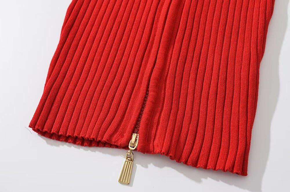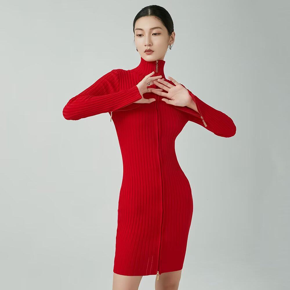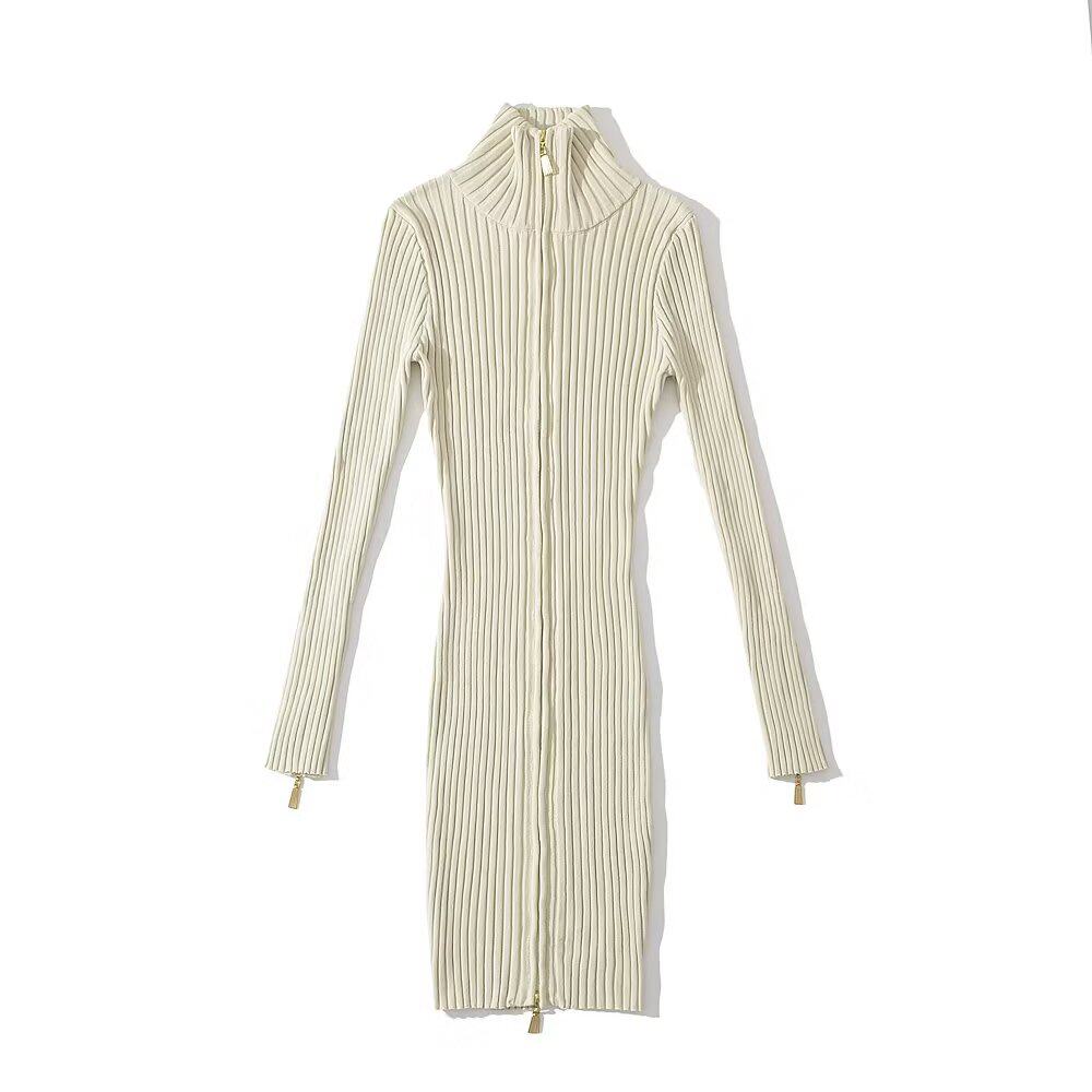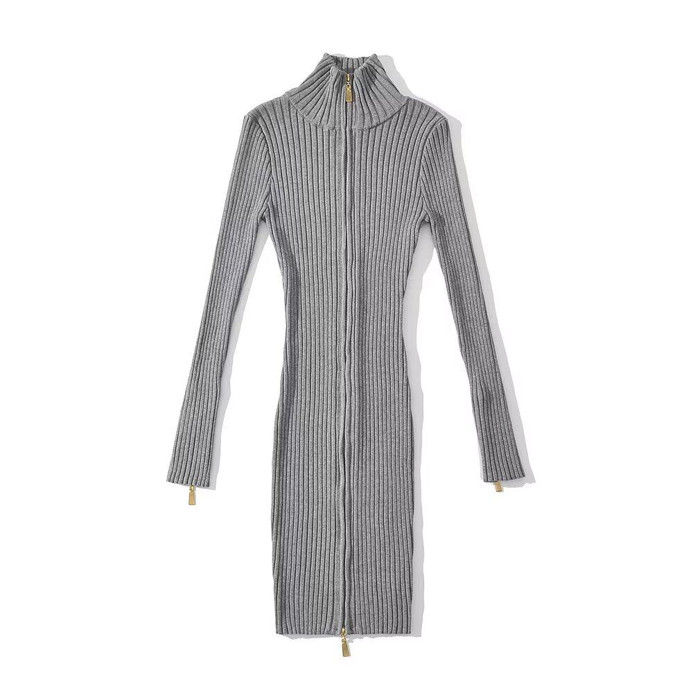Брендовое ретро трикотажное платье с молнией, европейский стиль, с акцентом на бедрах, облегающий крой