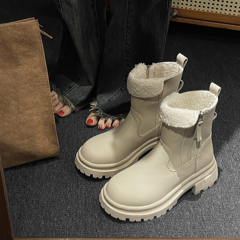 Martens, демисезонные высокие утепленные короткие сапоги на платформе с молнией