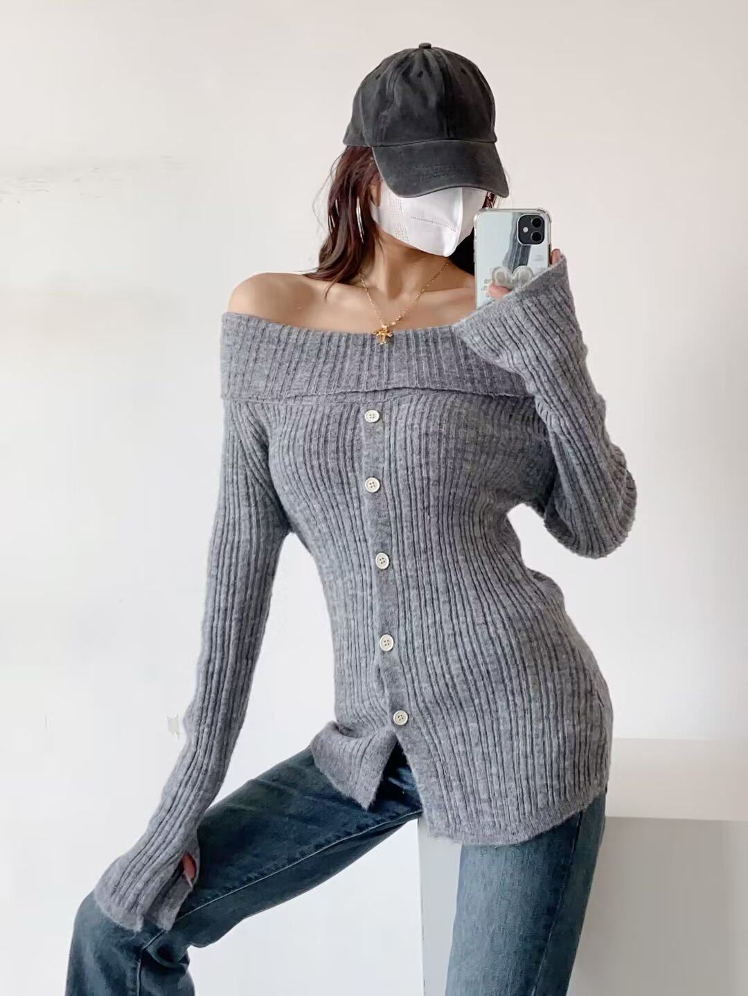 Сексуальный лонгслив, свитер, европейский стиль, открытые плечи