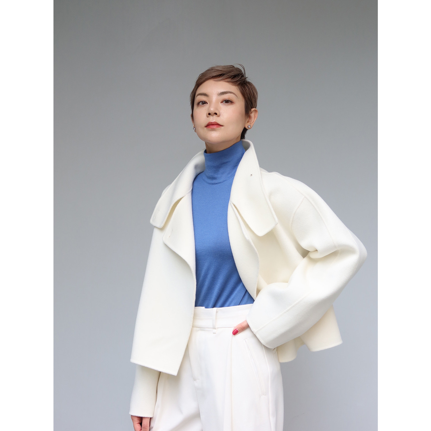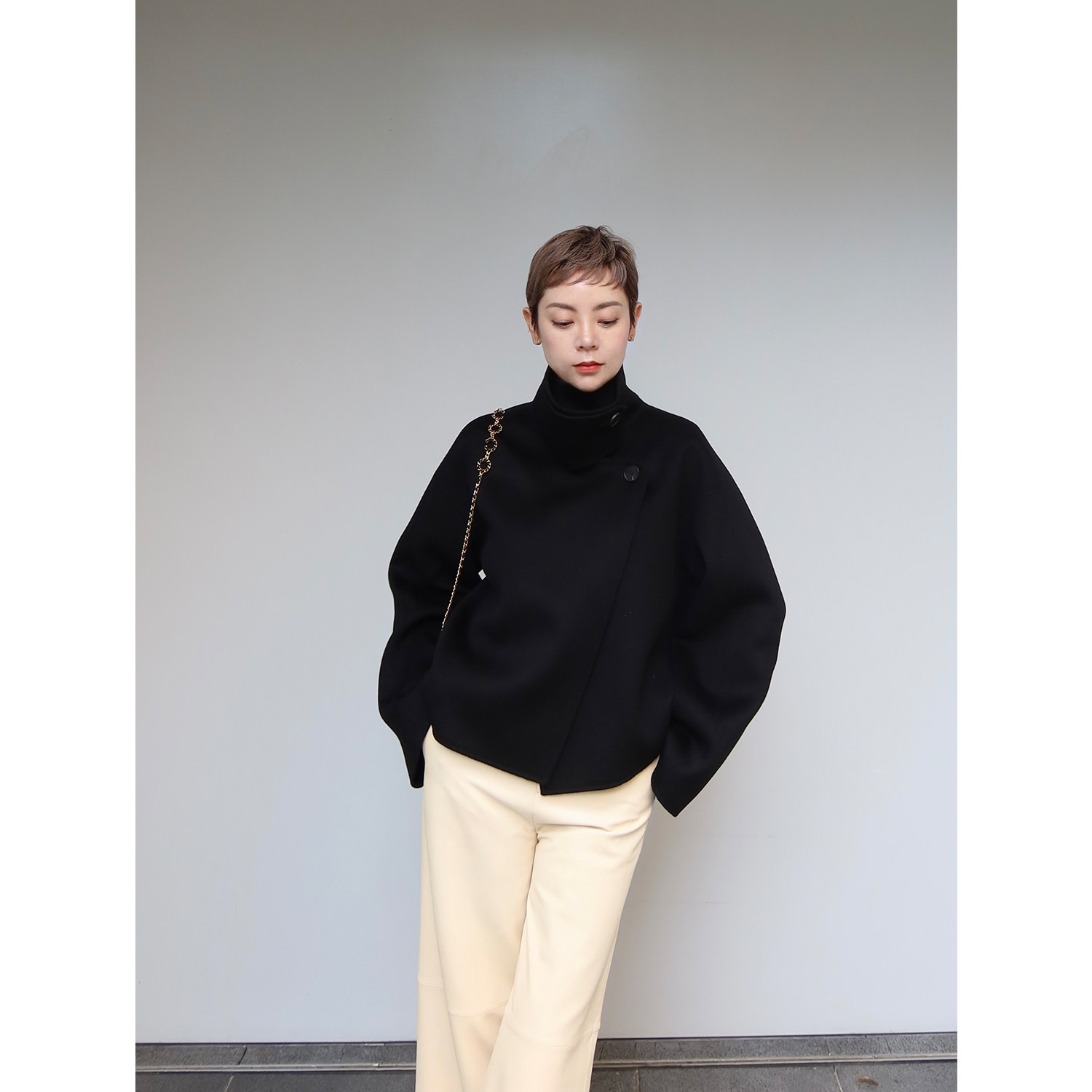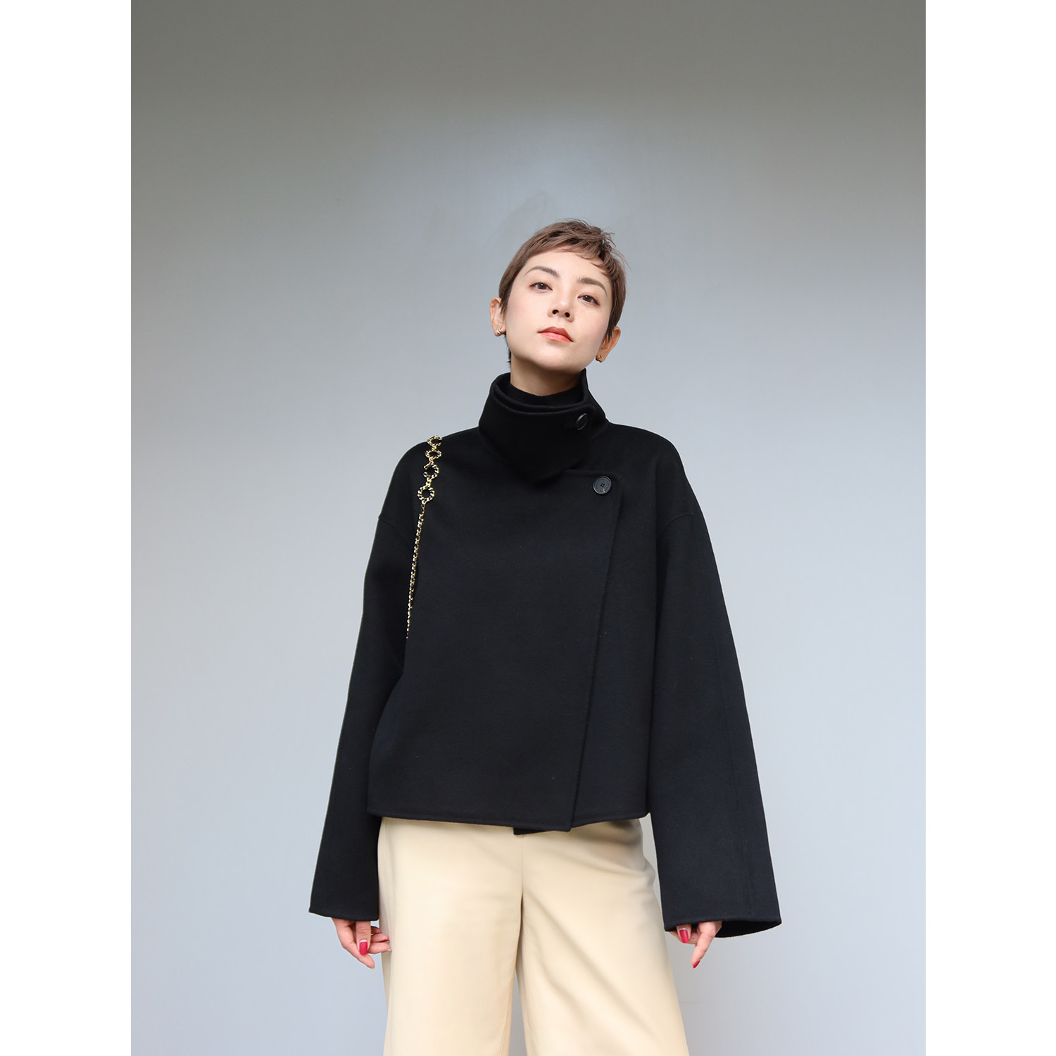 Шерстяное двусторонное зимнее короткое шерстяное пальто, изысканный стиль