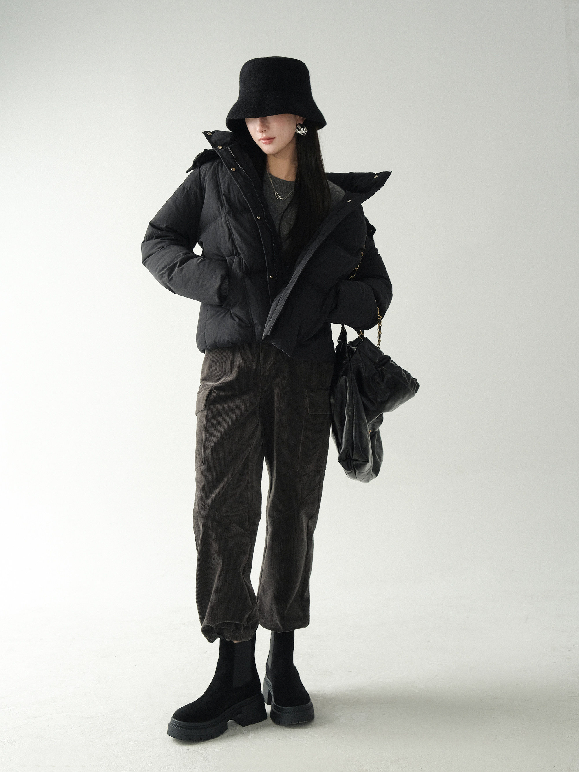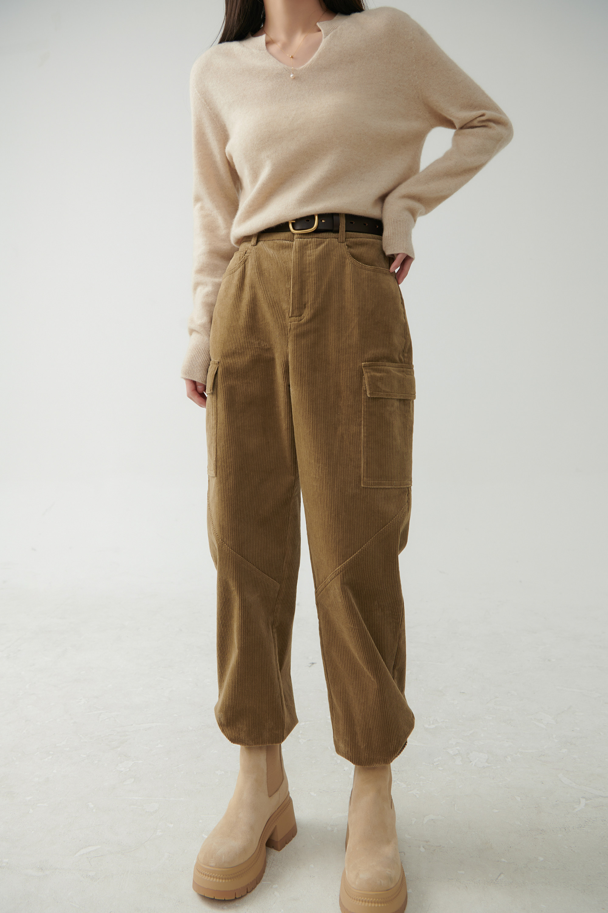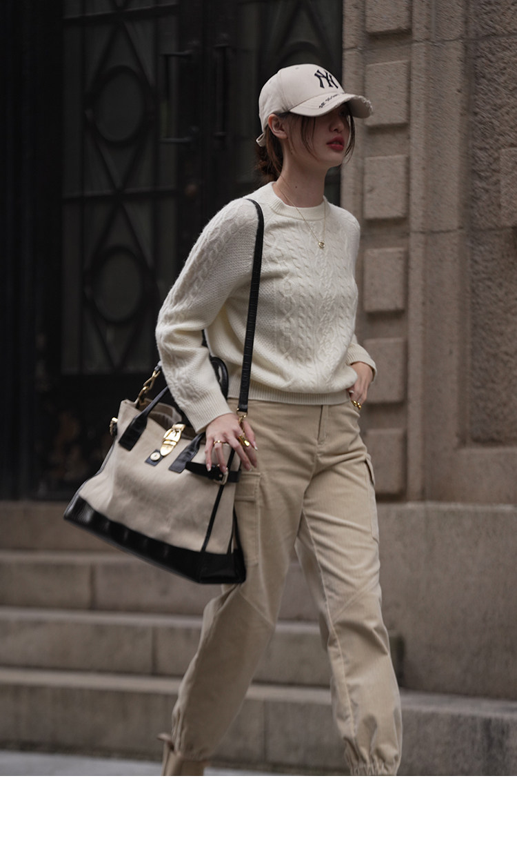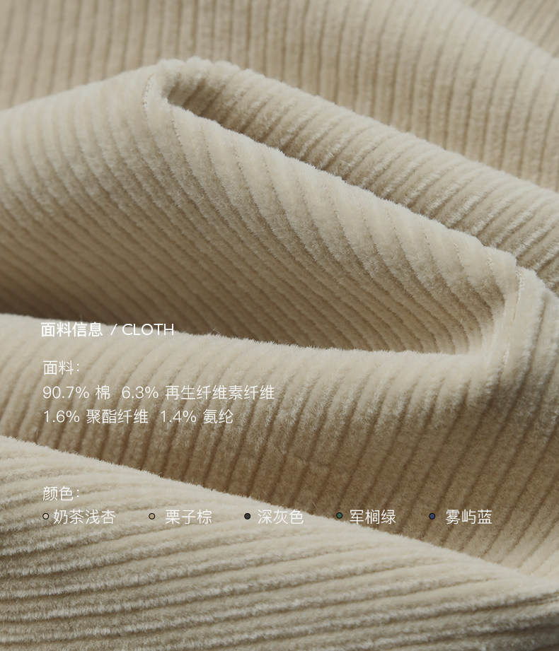| Использование различных красящих свойств различных типов волокон, схожих волокон посредством изменений в процессах и комбинаций окрашенной пряжи. Процесс внутренней подшивки, аккуратная проводка, выдающиеся детали и текстура обеспечивают удобство ношения. Изысканный дизайн пряжки из смолы также имеет практические функции и полностью интерпретирует ощущение повседневной рабочей одежды. |