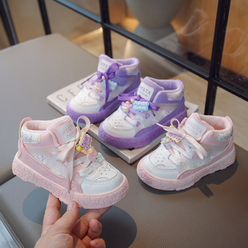 Детская флисовая спортивная обувь, высокие кроссовки для девочек, коллекция 2023, в корейском стиле, подходит для подростков