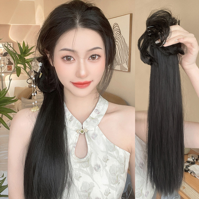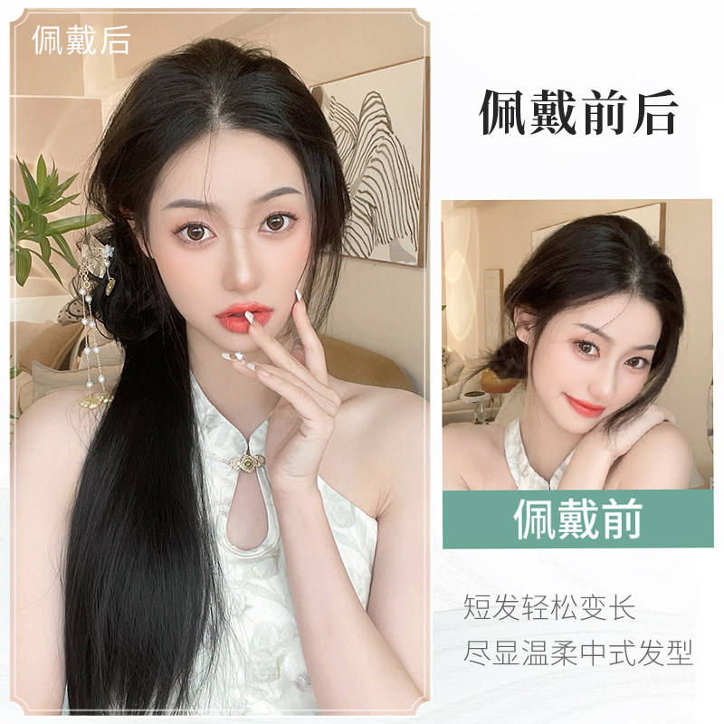 Хвостик, парик, заколка-крабик, сверхлегкий искусственный хвост изготовленный из настоящих волос с косичкой, прямые волосы, китайский стиль, популярно в интернете