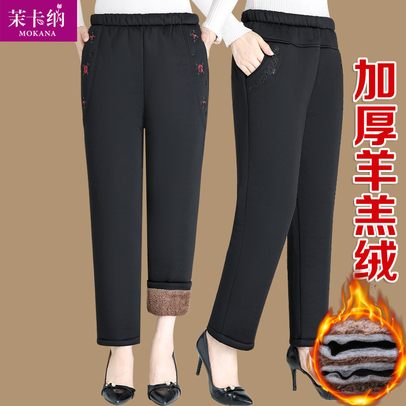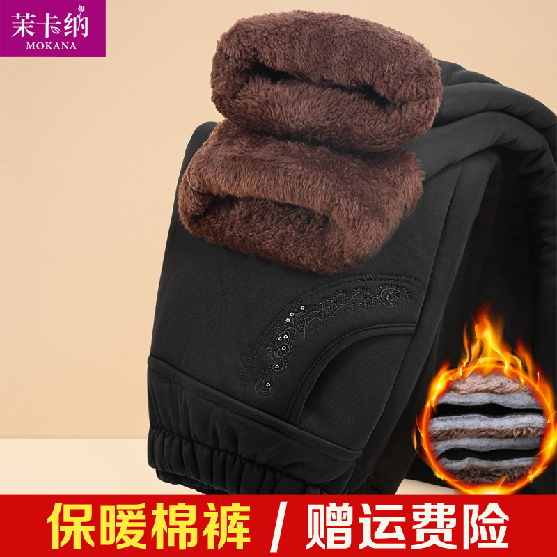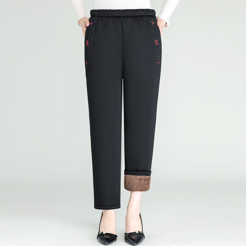 Утепленные бархатные удерживающие тепло штаны, для среднего возраста