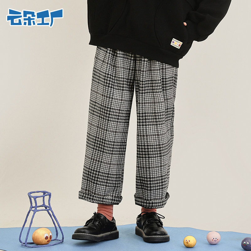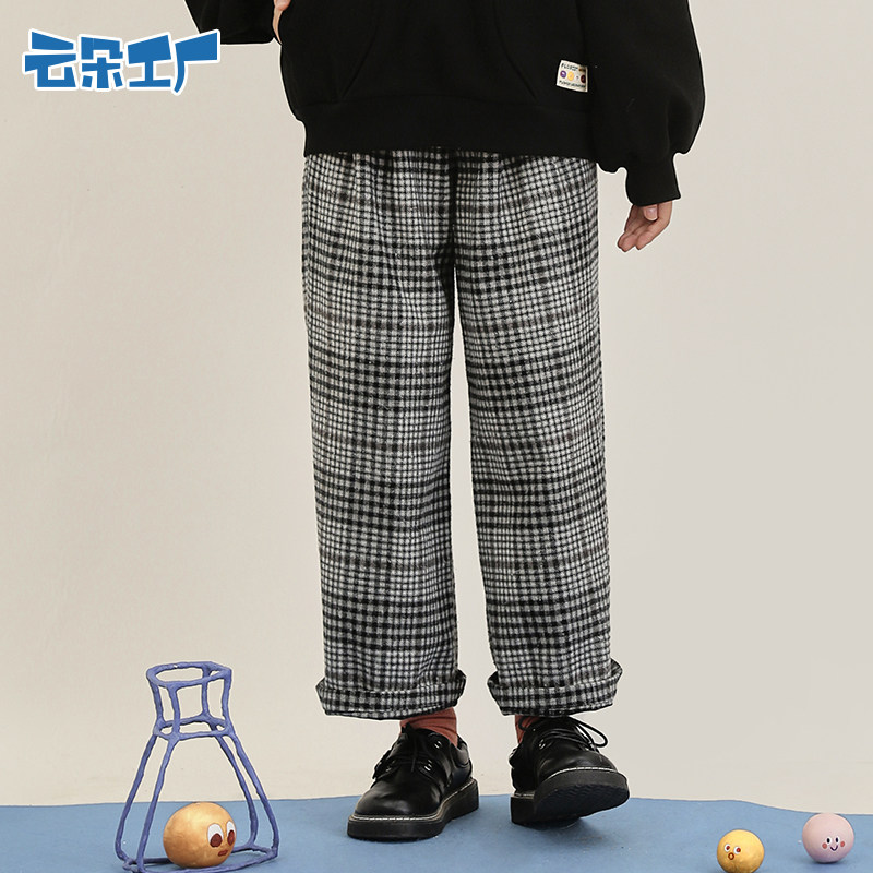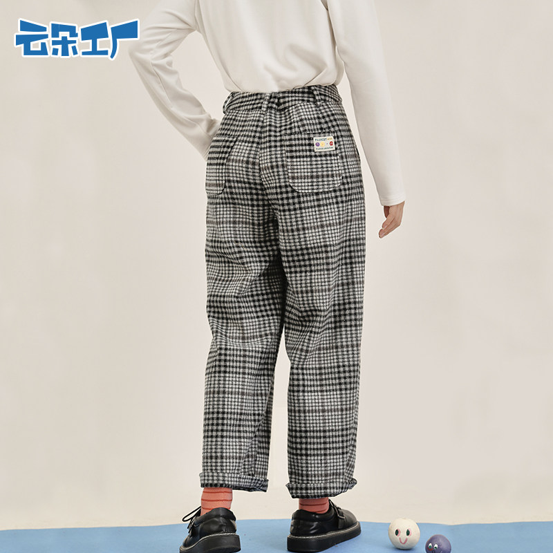 云朵工厂 Шерстяные демисезонные штаны, леггинсы, джинсы с начесом, свободный прямой крой