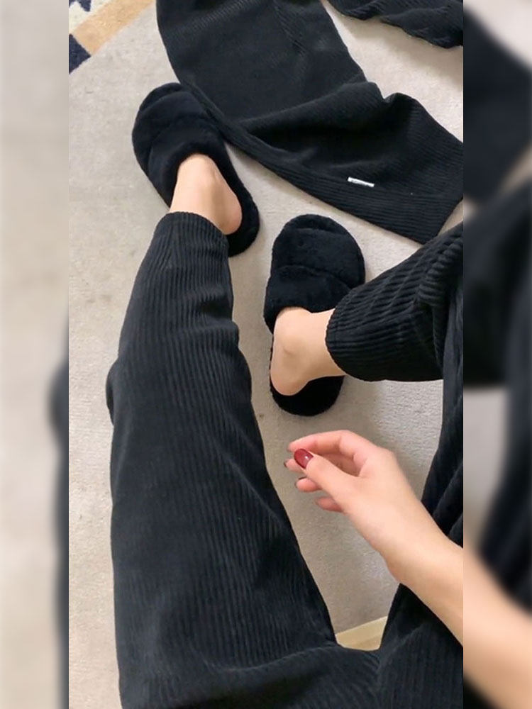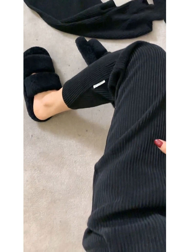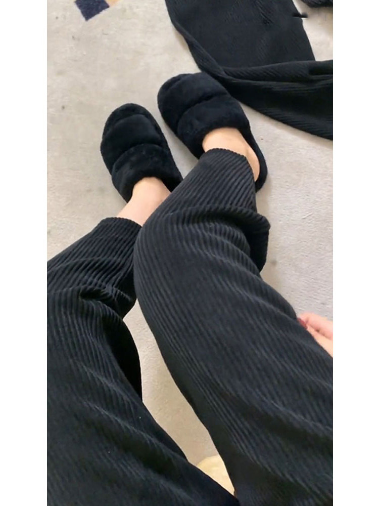 Джинсы с начесом, черные вельветовые штаны, демисезонные леггинсы, высокая талия, свободный прямой крой, стройный силуэт