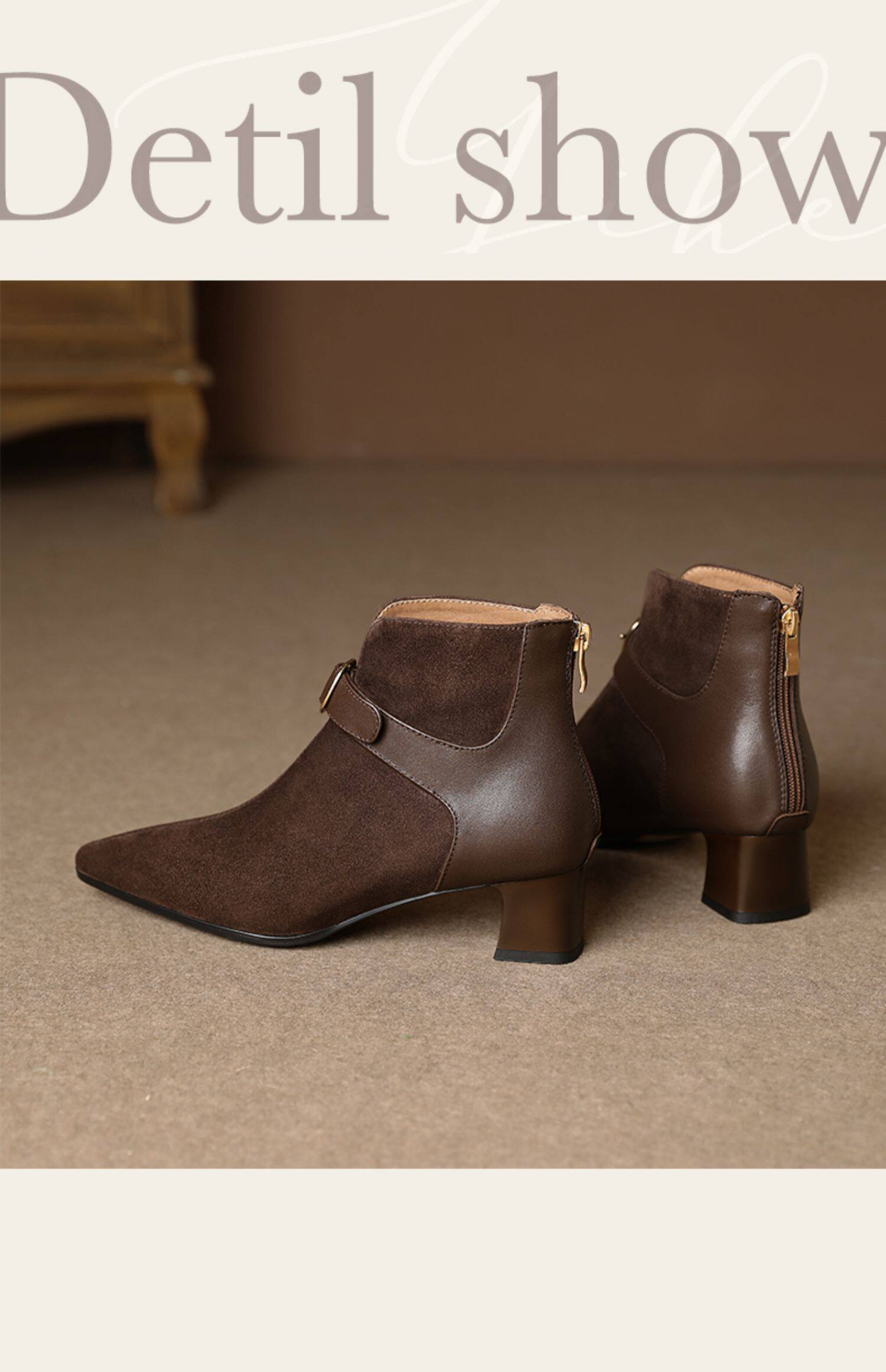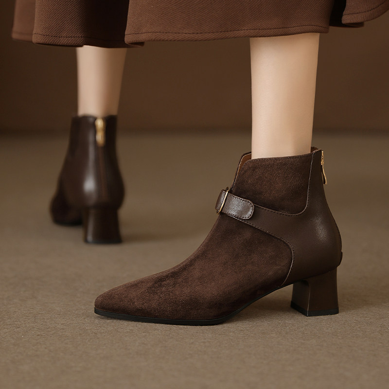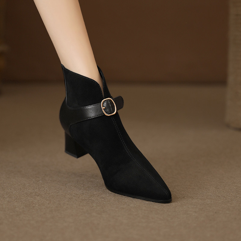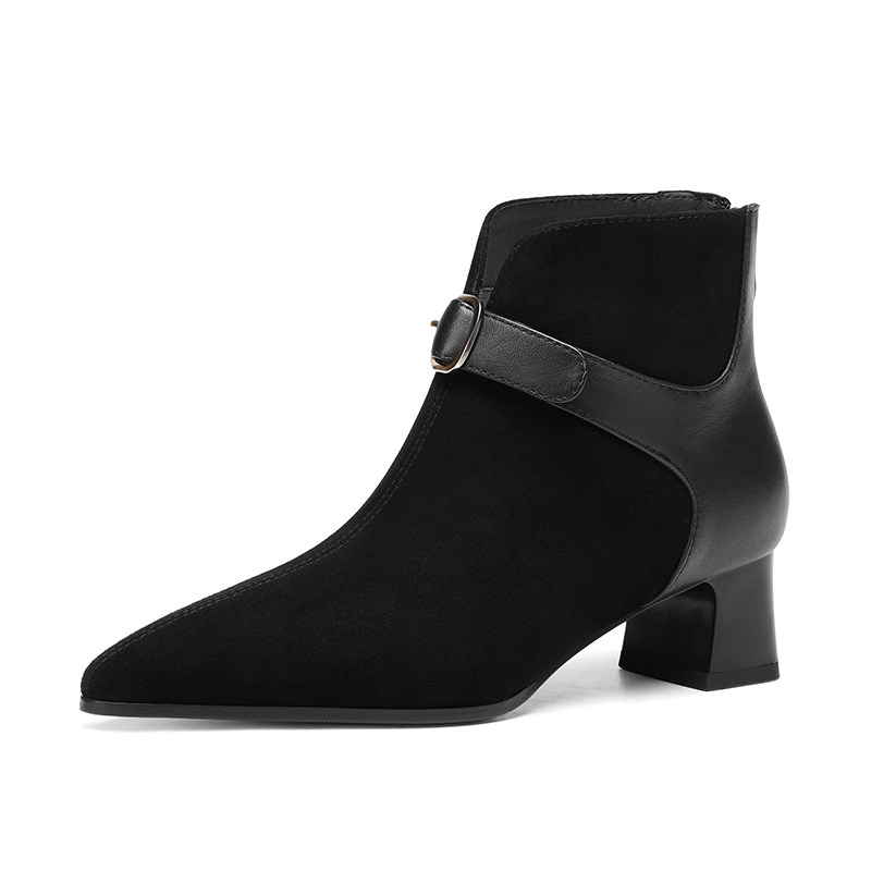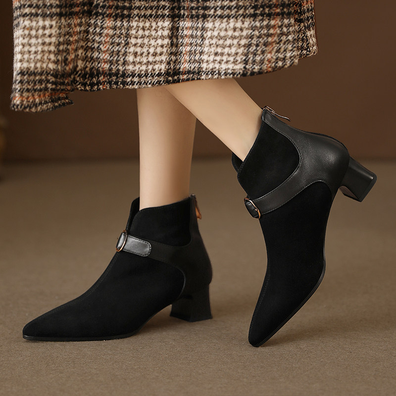 Tisdaini Retro Stitching ~ Black Pointed Brough Skeel Boots Женская весна и осенняя кожаная короткая трубка Martin Boots 4.5см