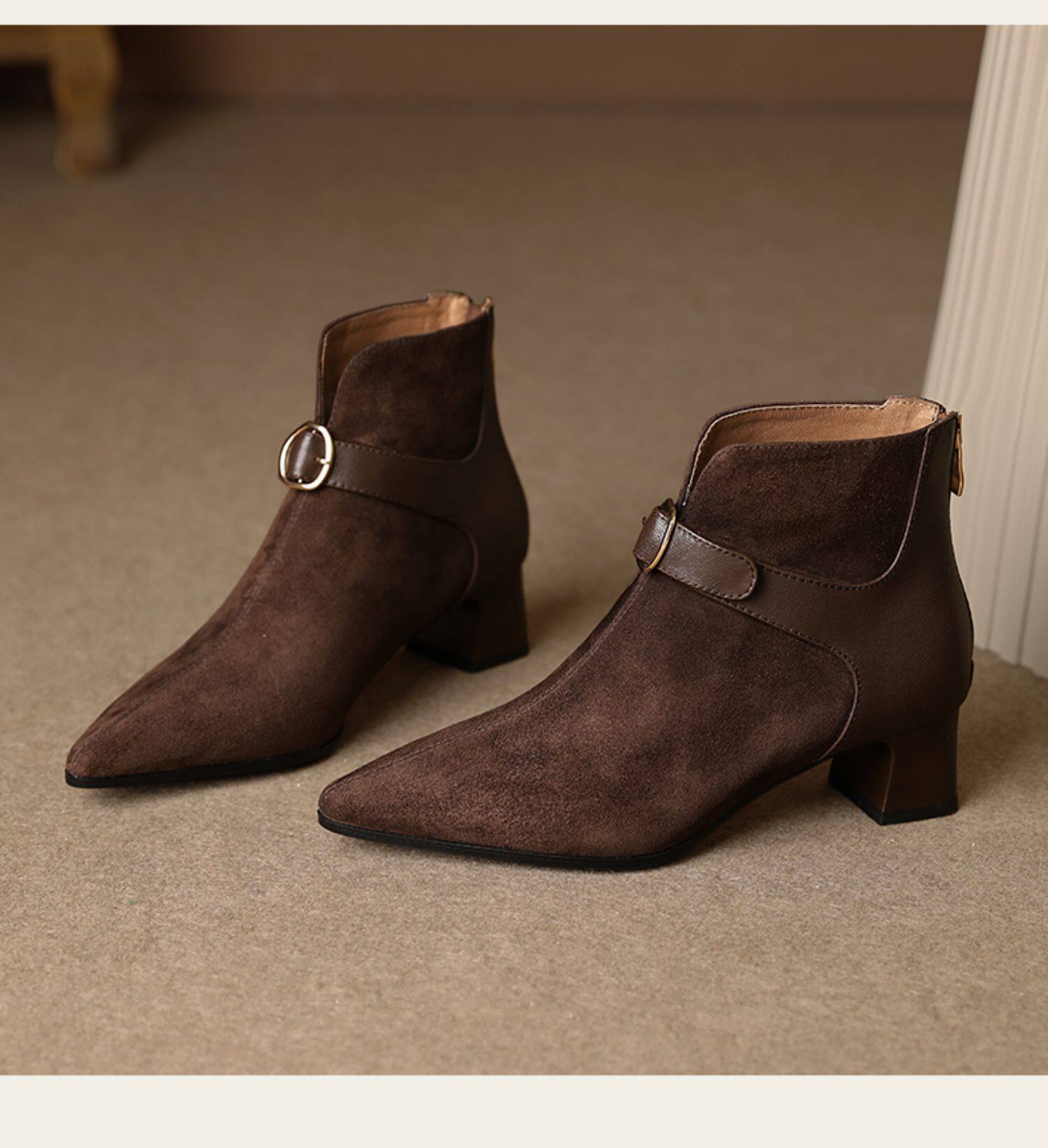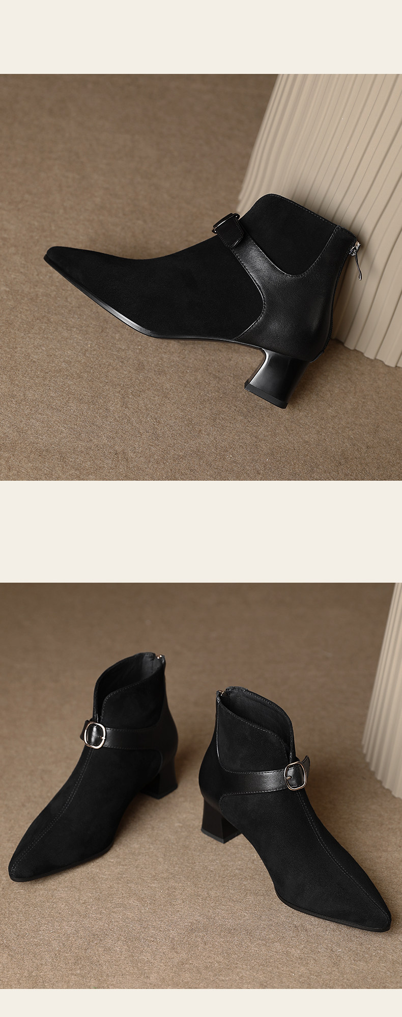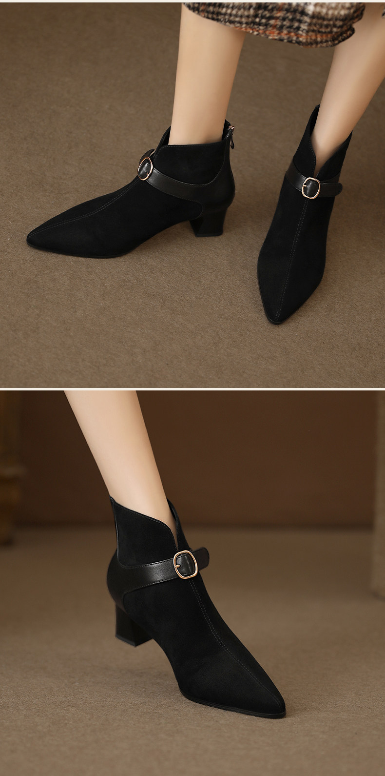 Tisdaini Retro Stitching ~ Black Pointed Brough Skeel Boots Женская весна и осенняя кожаная короткая трубка Martin Boots 4.5см