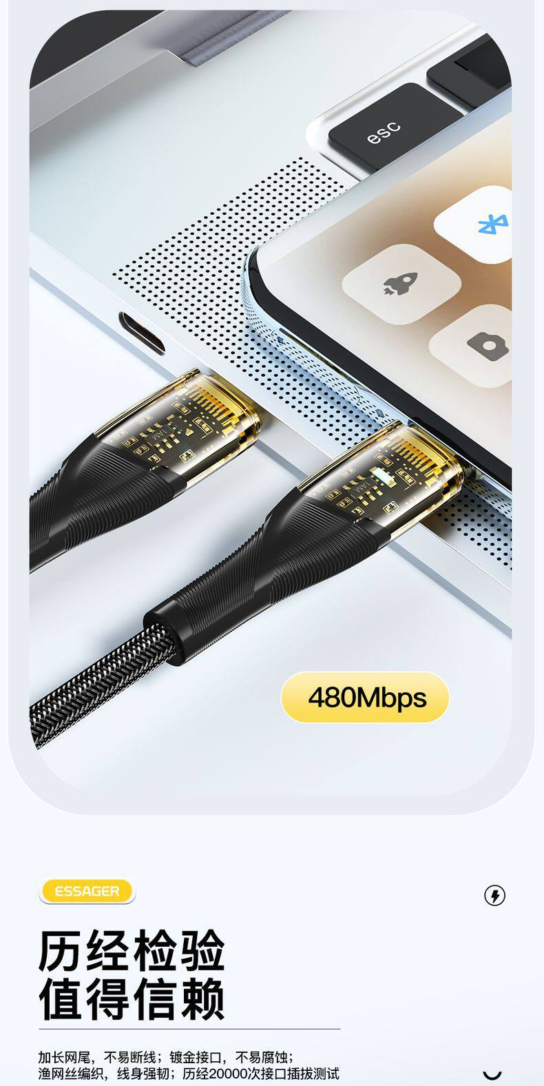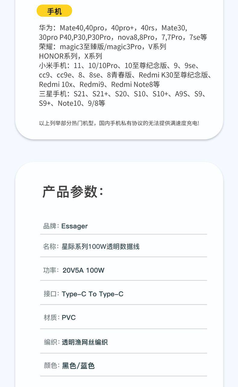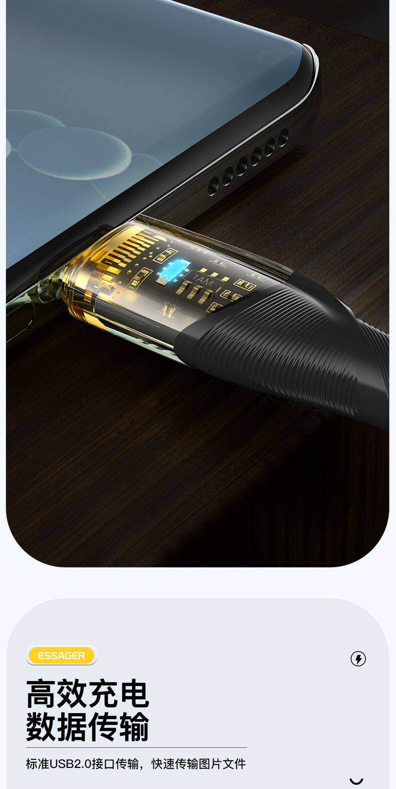 ESSAGER Мобильный телефон, зарядный кабель, 30W, 60, 60W, 7A, быстрая зарядка 100W