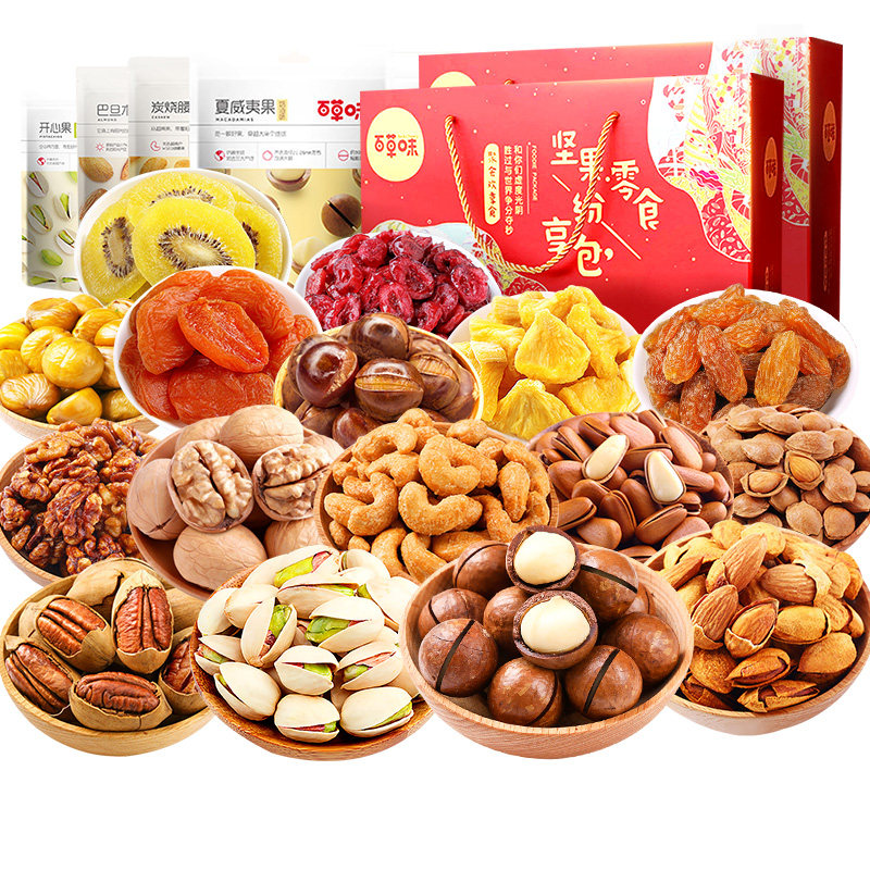 Bai Caowei Nuts Snack Gift Package Здоровый сухой фрукты Подарочные подарочные коробки Подарки Полный бокс Новые подарки