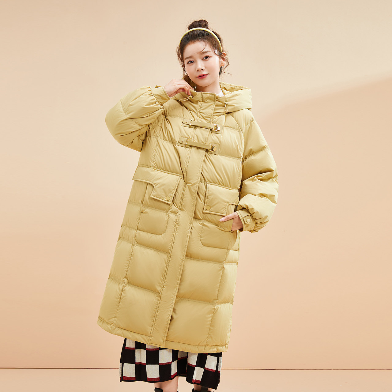 Демисезонный ретро трехмерный пуховик для отдыха, по фигуре, длина макси