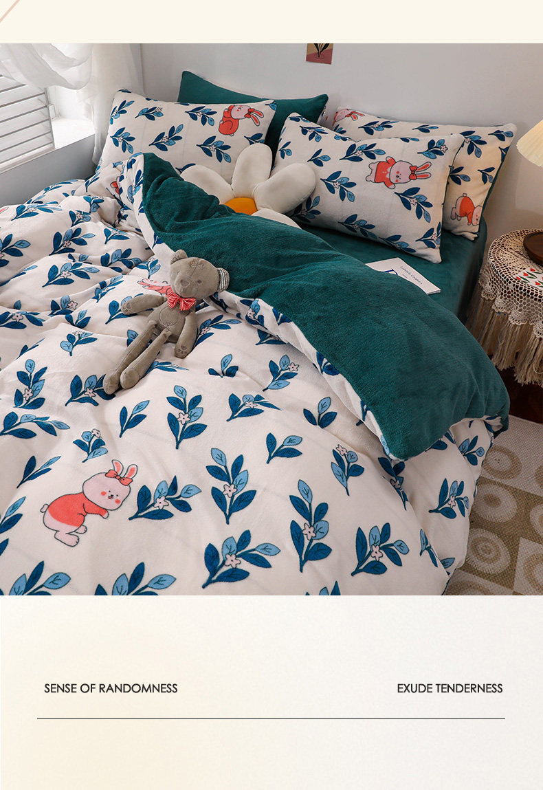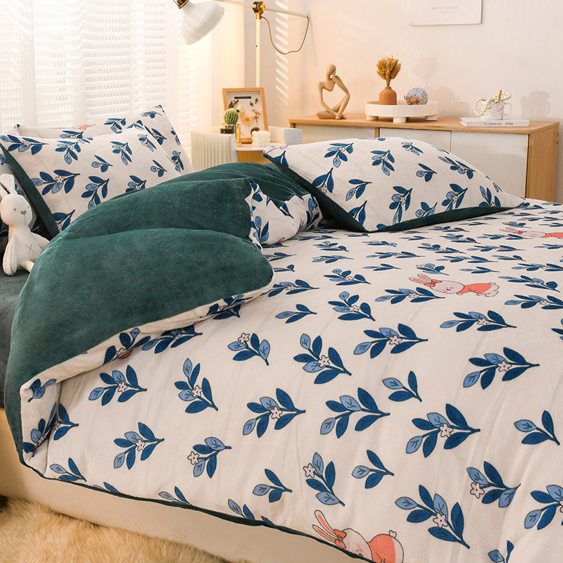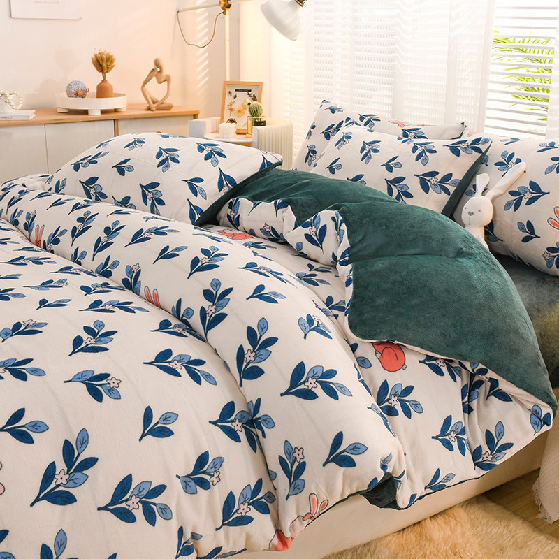Зимнее покрывало, коралловый комплект, флисовая простыня, двусторонний фланелевый зимний пододеяльник, 4 предмета