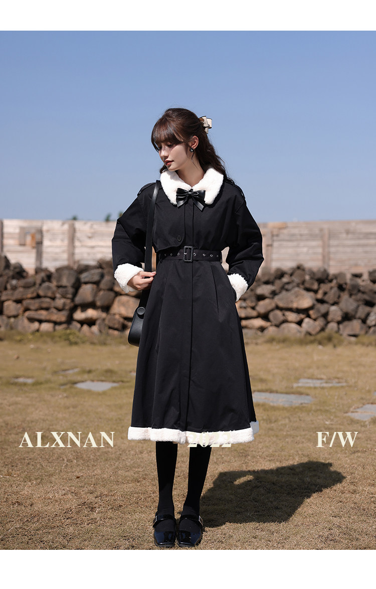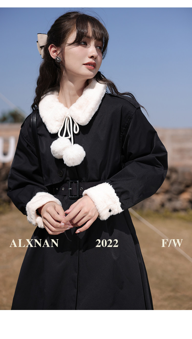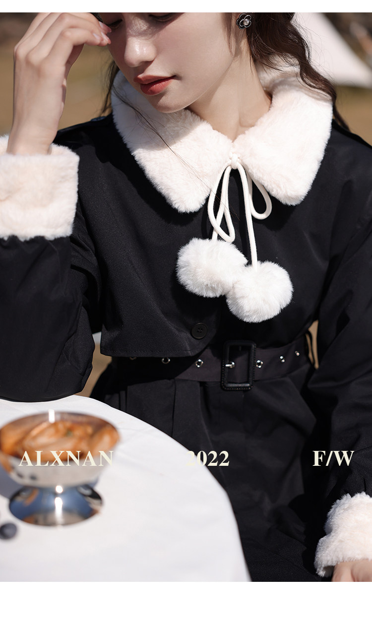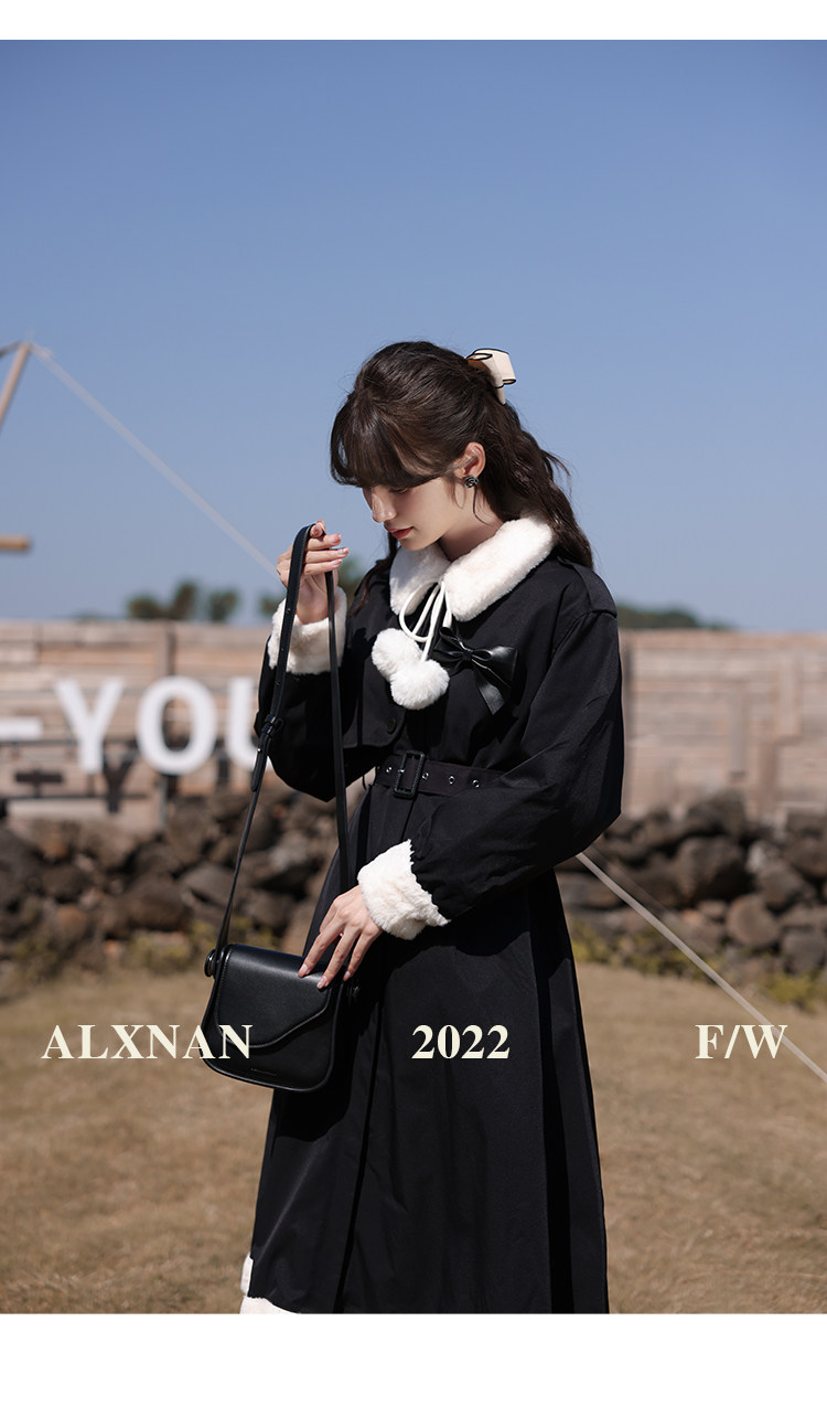 Lu Siangnan Fu Latte "Стильная черная талия траншевая куртка женская осень и зима 2023 Новое пригородное пальто"