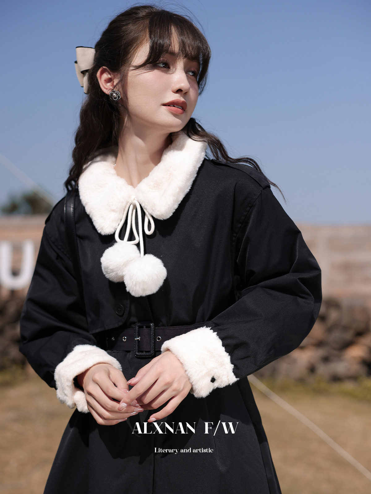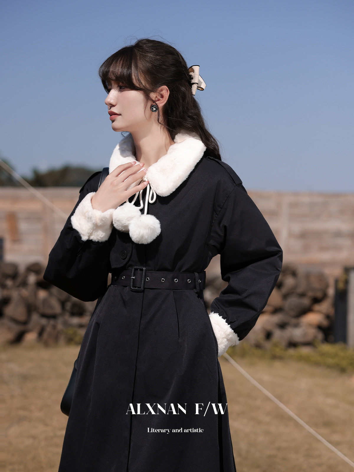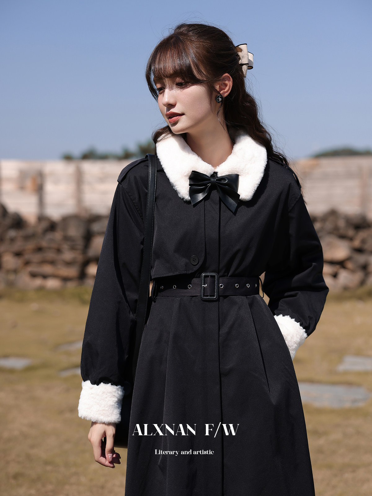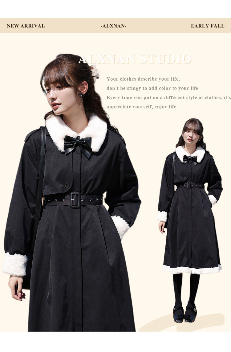 Lu Siangnan Fu Latte "Стильная черная талия траншевая куртка женская осень и зима 2023 Новое пригородное пальто"